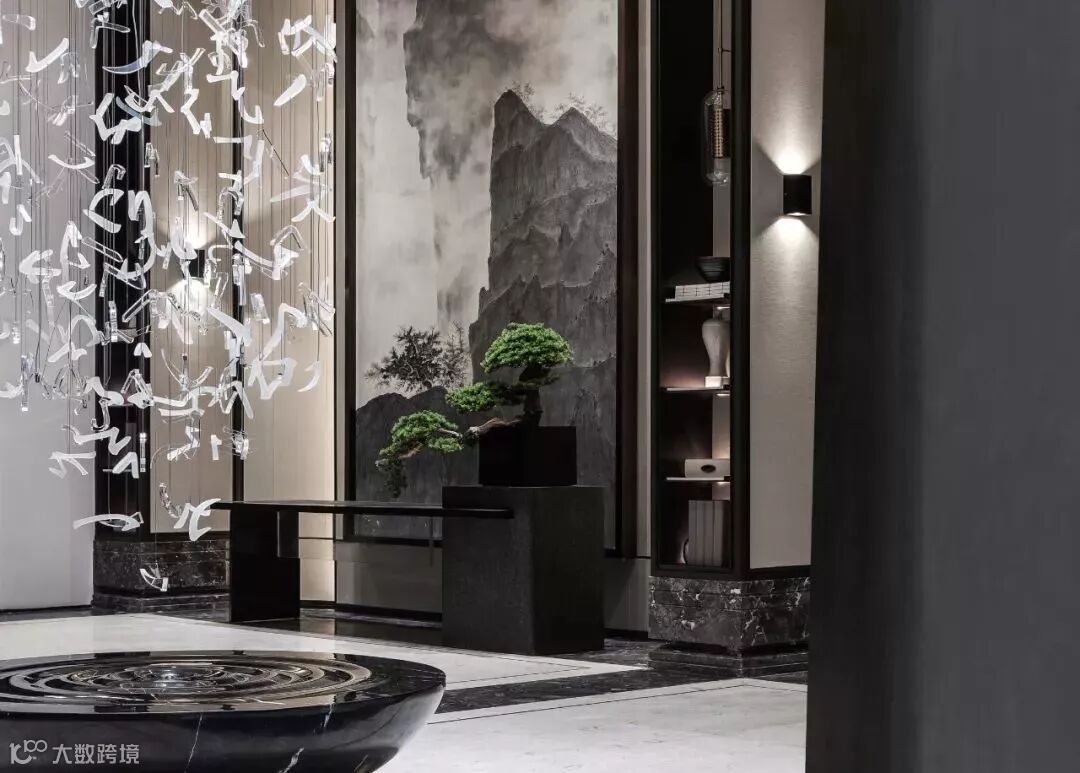设计师将自然的鬼斧神工融入这人文画作,裂纹大理石就像随意的泼墨,“或挥或扫,或淡或浓,为山为石,为云为水”。