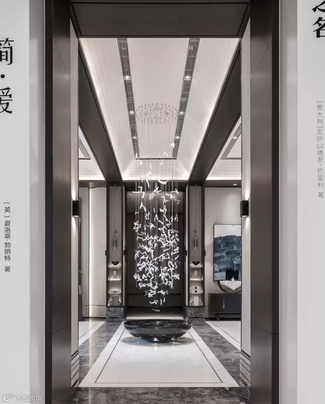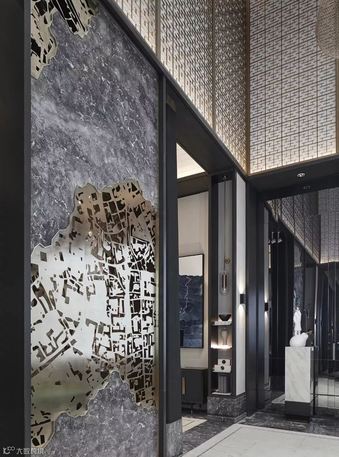 剥离斑驳的大理石,透出破碎金片,用不规则的线条打造出一种流动感,打破空间的呆板,寓静于动。