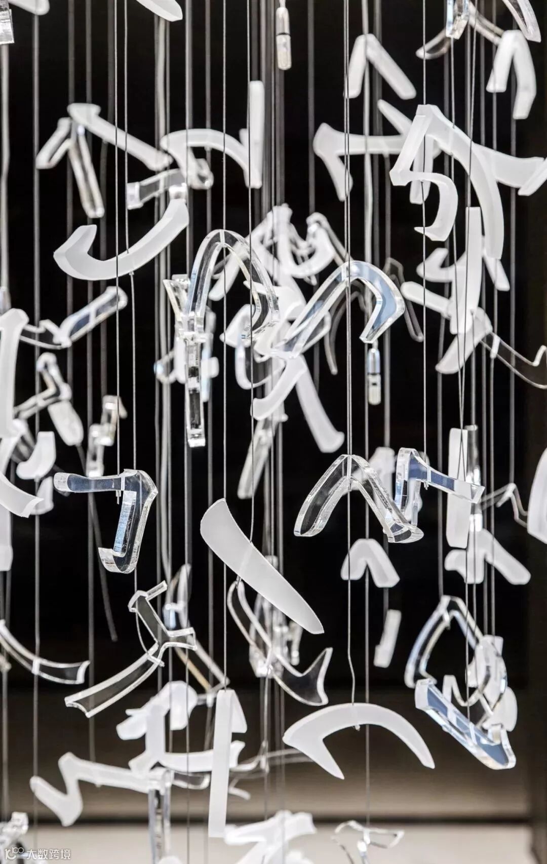 横竖点折,撇捺弯钩,将平面的书法,打磨成立体形状,悬而挂之,光线的深浅自然呈现下笔的轻重。