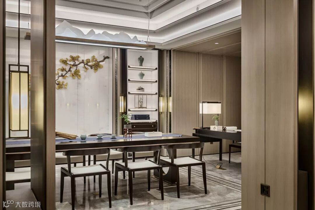 用餐空间,同样实木的设计与其他空间交相辉映。一张餐桌、几把座椅,品质生活一览无遗。
