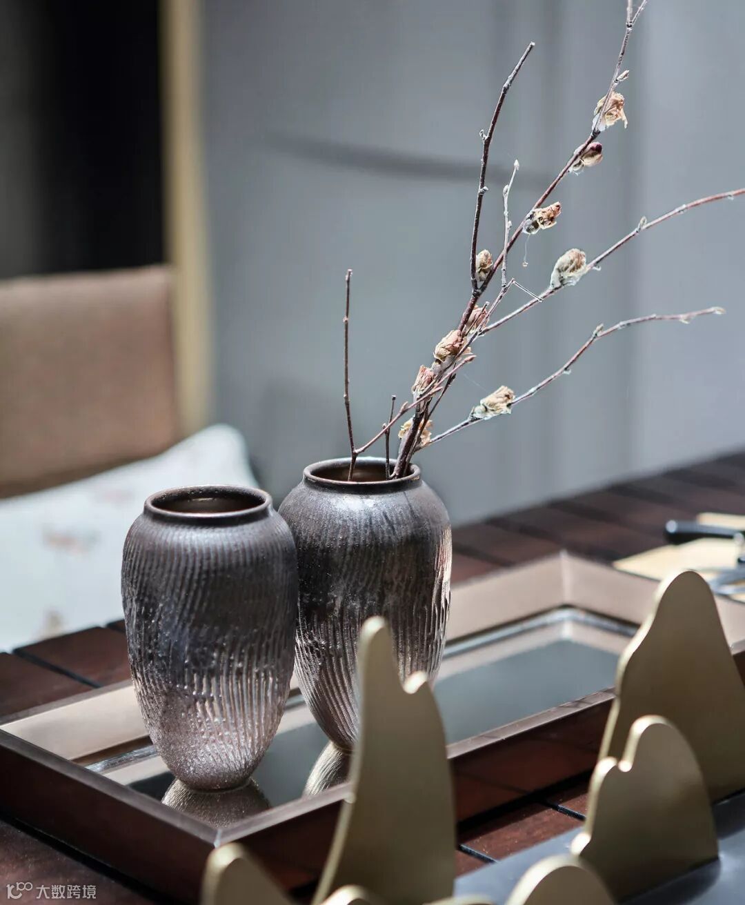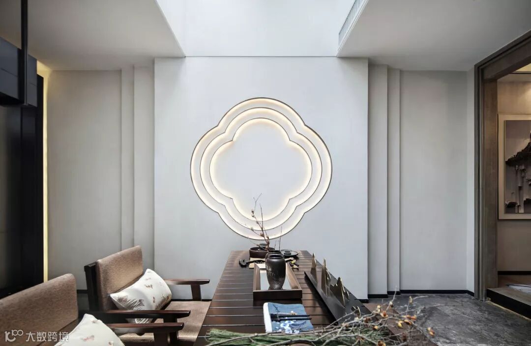本案采用隔、透、联、通的设计手法,运用框景、借景、对景、添景等造景方式营造出空间的意境与禅味,把自然与中式文化糅合在一起,“月下看荼醾,烛下看海棠”的人文情趣在这一室之间应运而生。