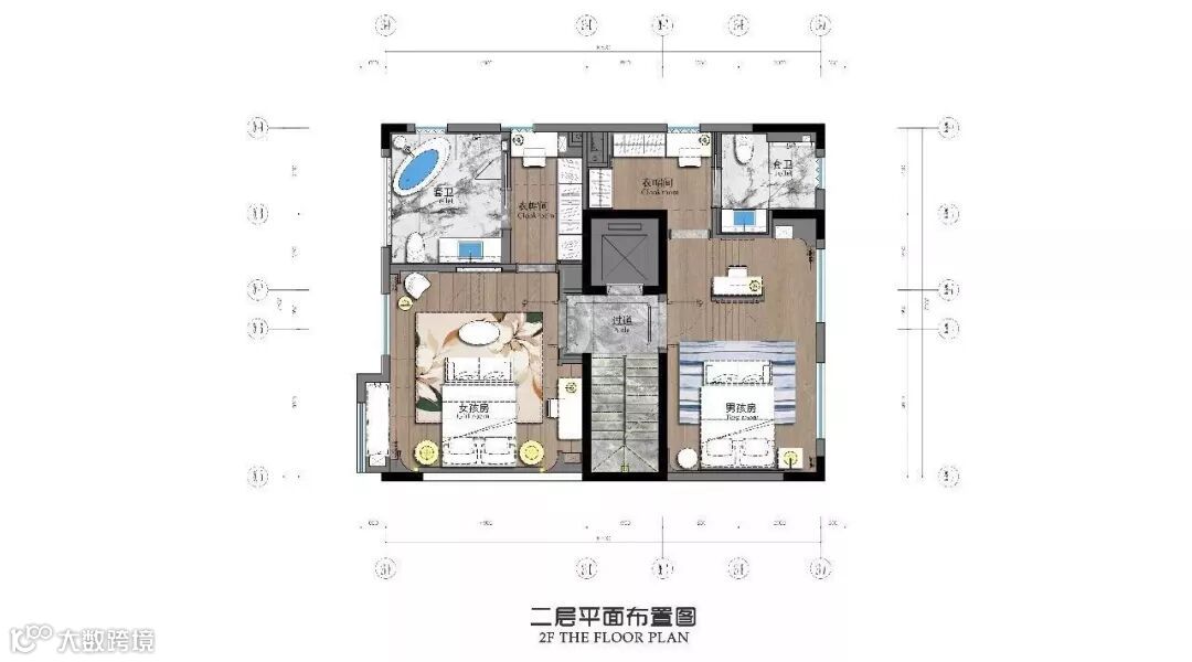空间布局上,设计师采用5+1的房间模式,即五个套间加一个客卧的组合形式,最大化的提高了业主的住房需求和居住品质。