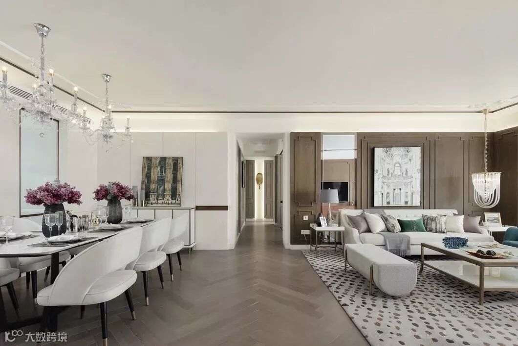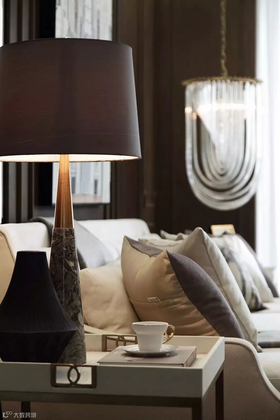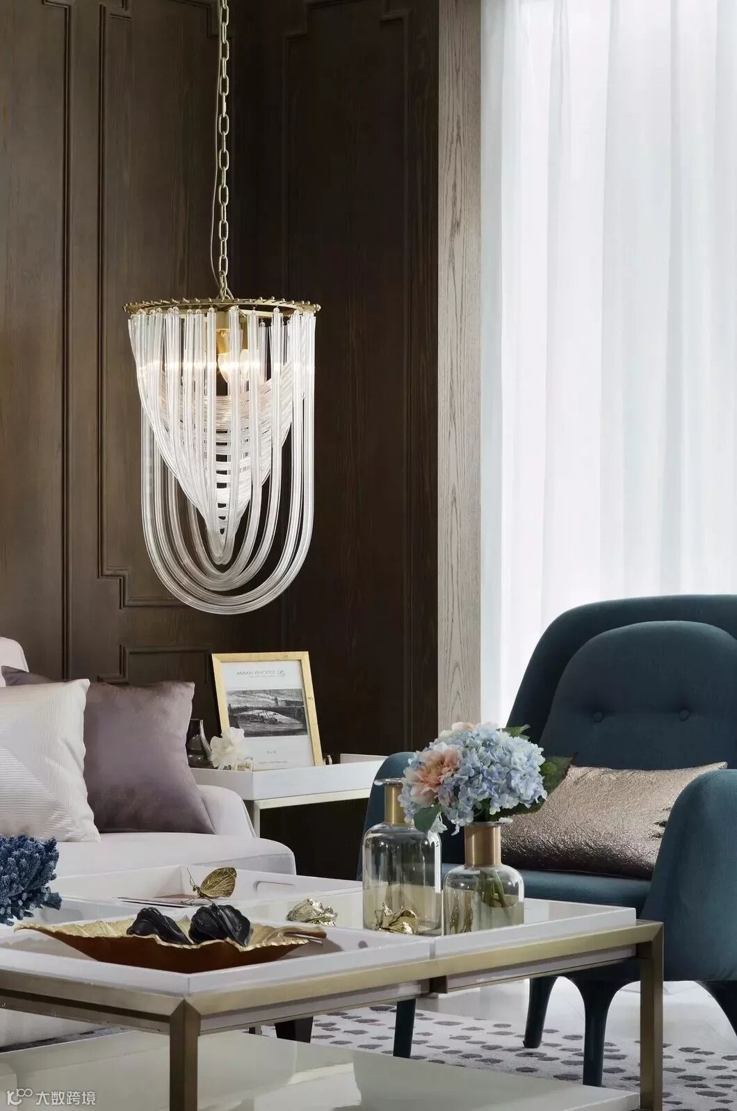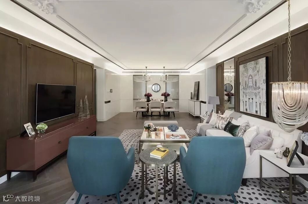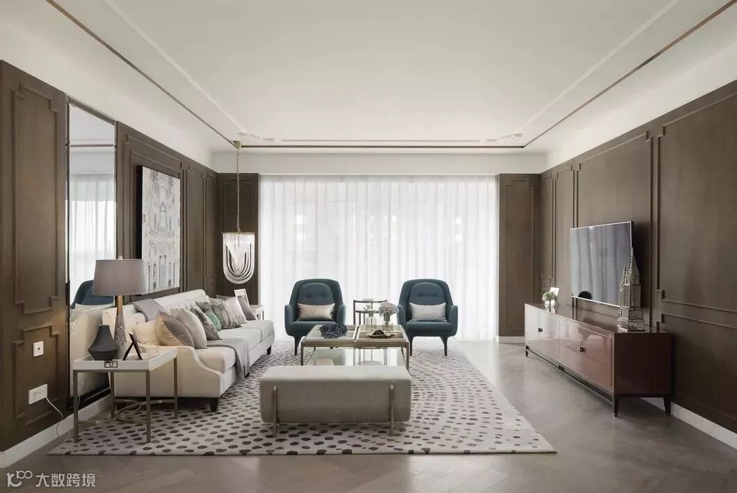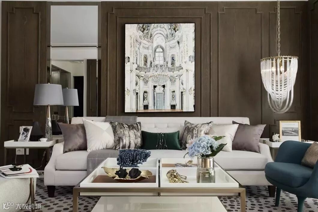 有这样一个空间,留给与家人相处的好时光,围座在圆润沙发上,从晨光到落霞,看着光线在家中流转,最后浓缩在一盏垂起的流苏吊灯上,心里会有一种难以言语的踏实。