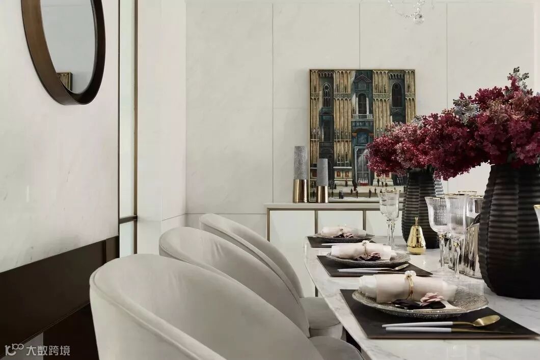古铜色丝线和厚重典雅的大理石,缠绕羁绊于墙身犄角,不经意间泄露出家中主人的不凡品味。似是一支时有小提琴隐没其间的协奏曲,悠扬在你的手边肘间。