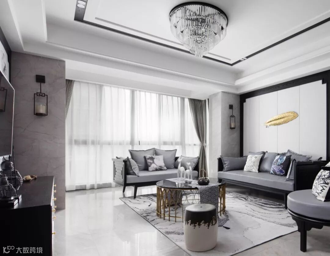 新中式风格在设计上延续了明清时期家居配饰理念,在家具形态上更加简洁清秀,同时又打破了传统中式空间布局中等级、尊卑等文化思想,空间配色上也更为轻松自然。