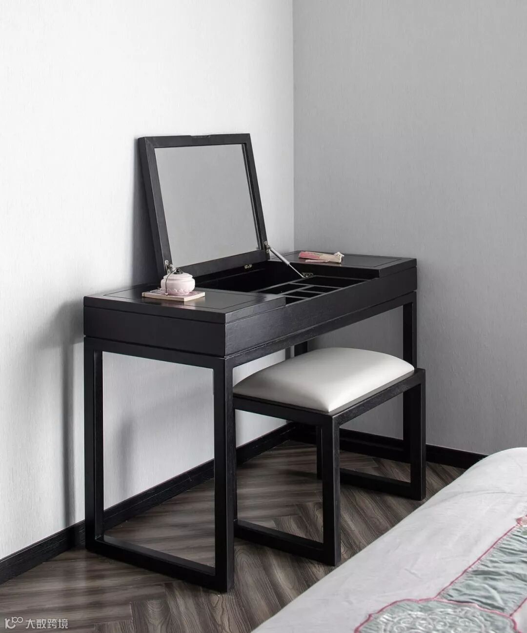 黑色的玄关柜配以白门,白色门以现代写意抽象的手法,使整体不会过于沉闷和黑黑的一片,又达到极简中式的韵味...