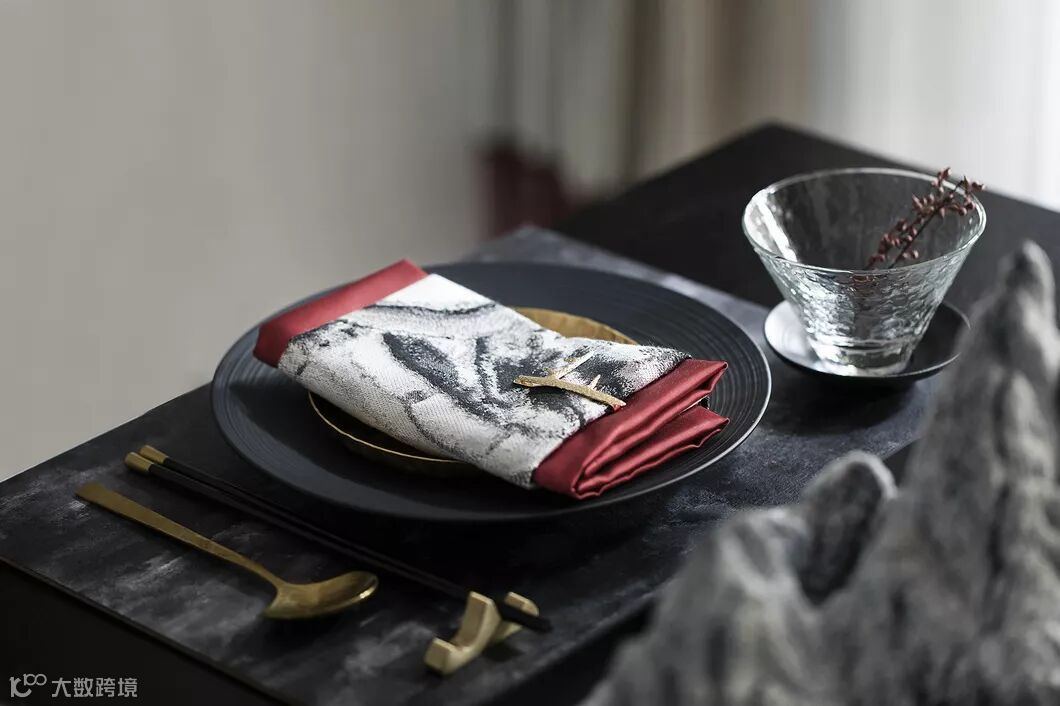 映刻着浮云烟霞的团扇做了灯饰,这文雅与精致令人不禁心生喜爱。就餐的礼仪融合了中西形式,典雅的餐具与摆设,构设起端庄大气的氛围。