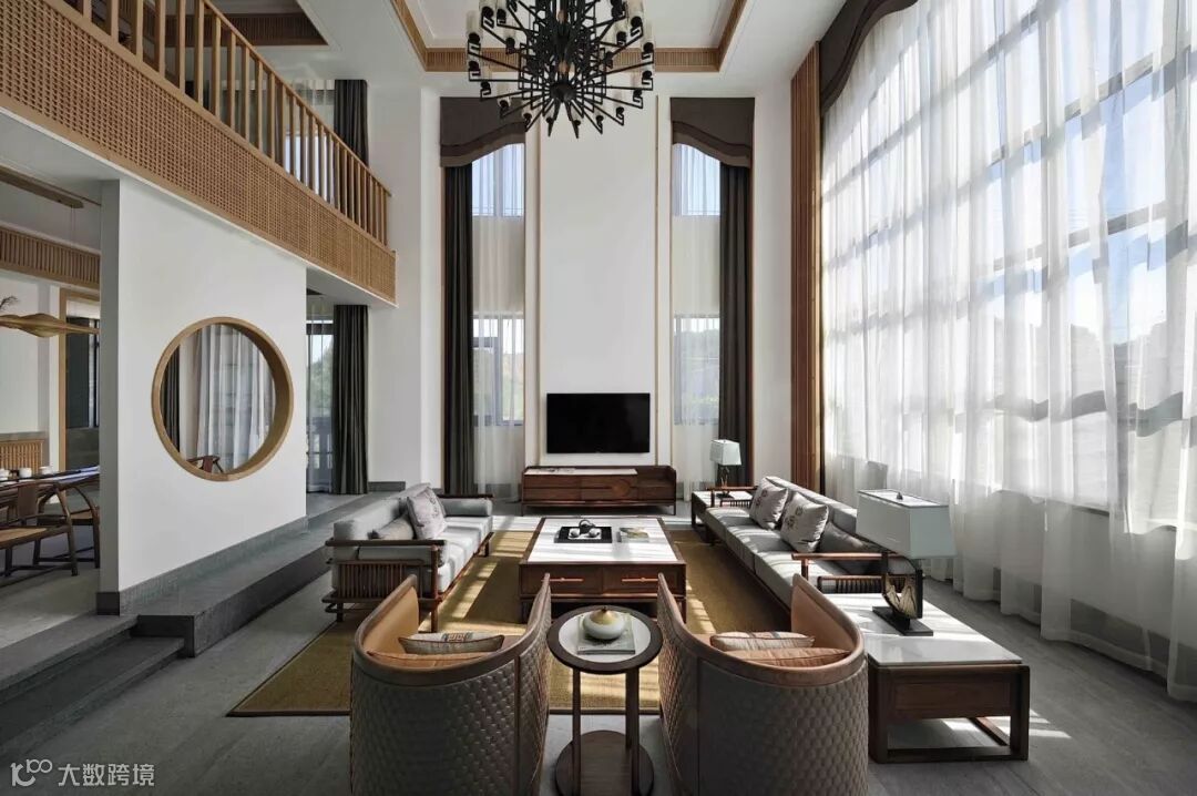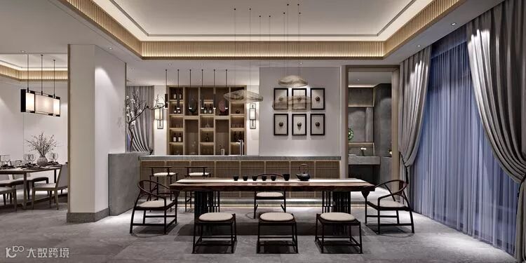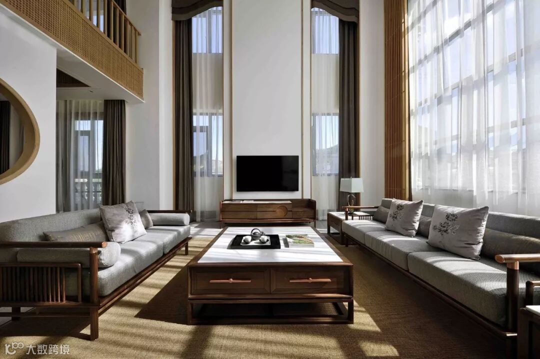 客厅,以“本真”贯穿整个空间的主题,通过“隐”、“藏”方式扩大空间意境,虚实相生。