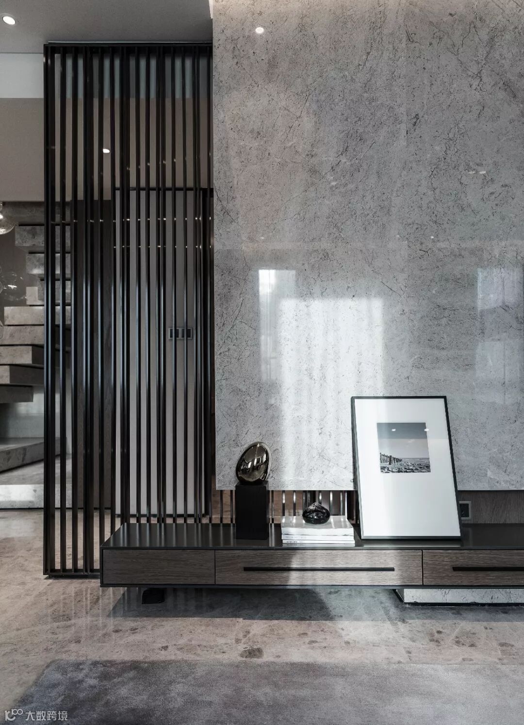 背景墙用象征自然的石材制成,简约中又多了一种温柔,回到“家”所应该有的样子。