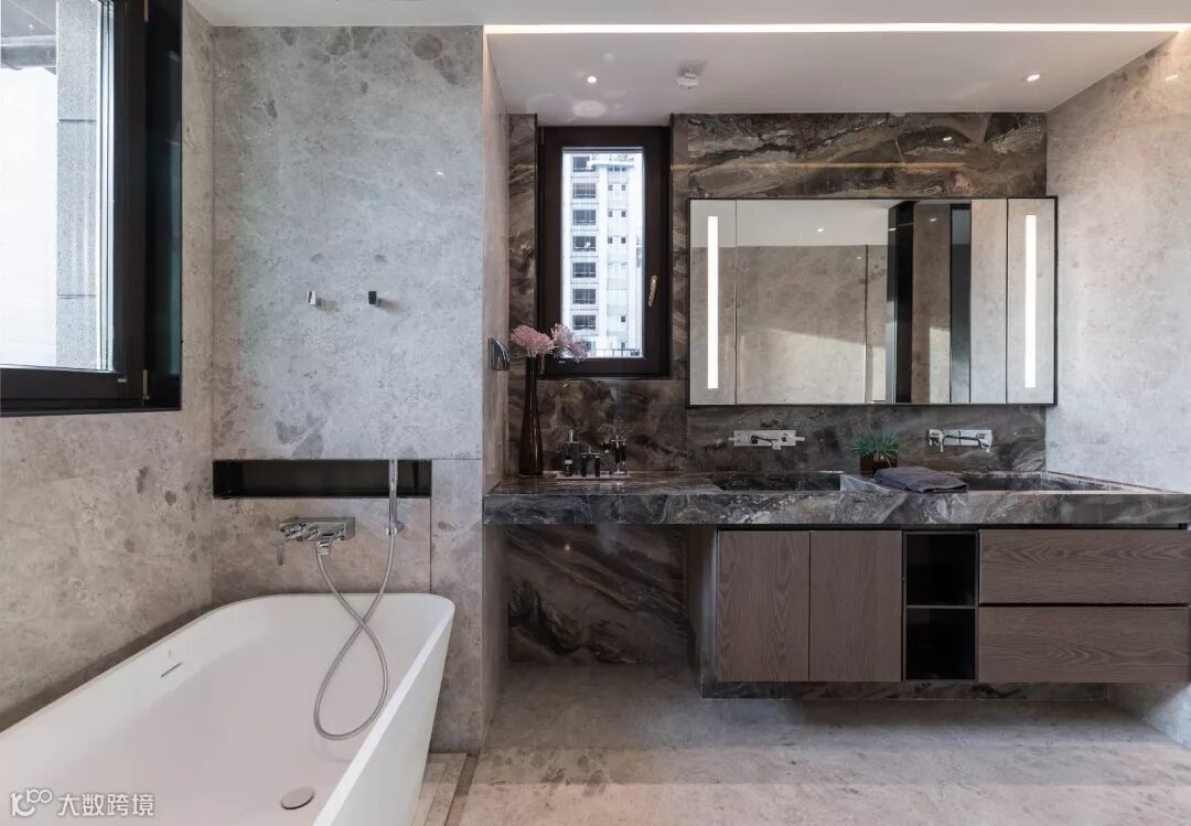 考虑到空间功能之于生活的重要性,主卧卫生间以极简为主题,去掉一切繁复的装饰,凸显空间的功能本质,借以达到最大程度的精神放松体验。