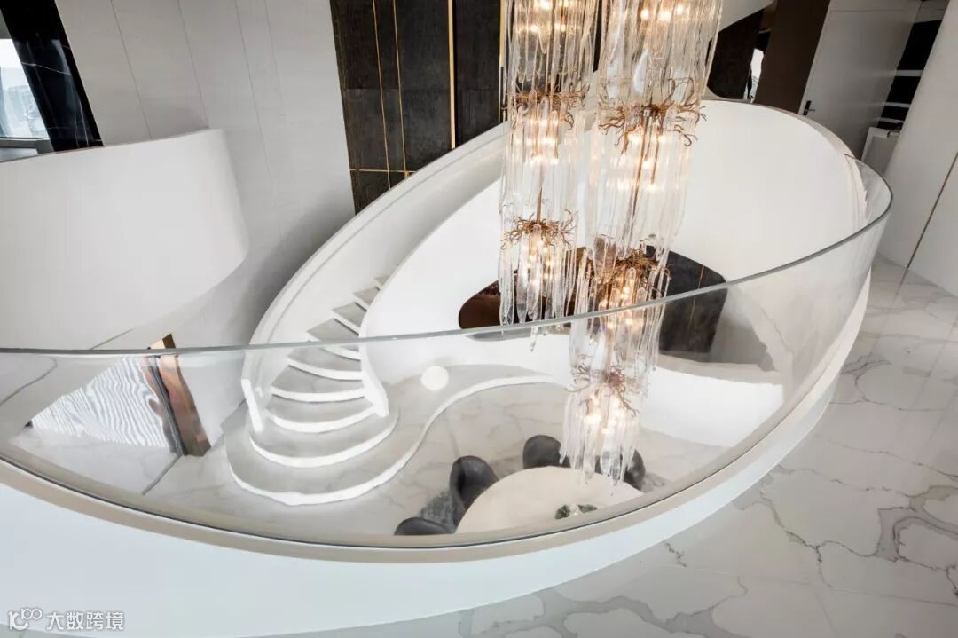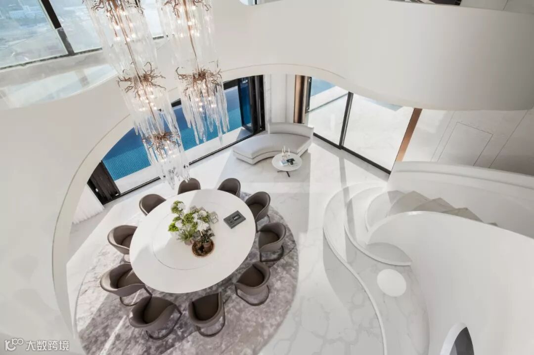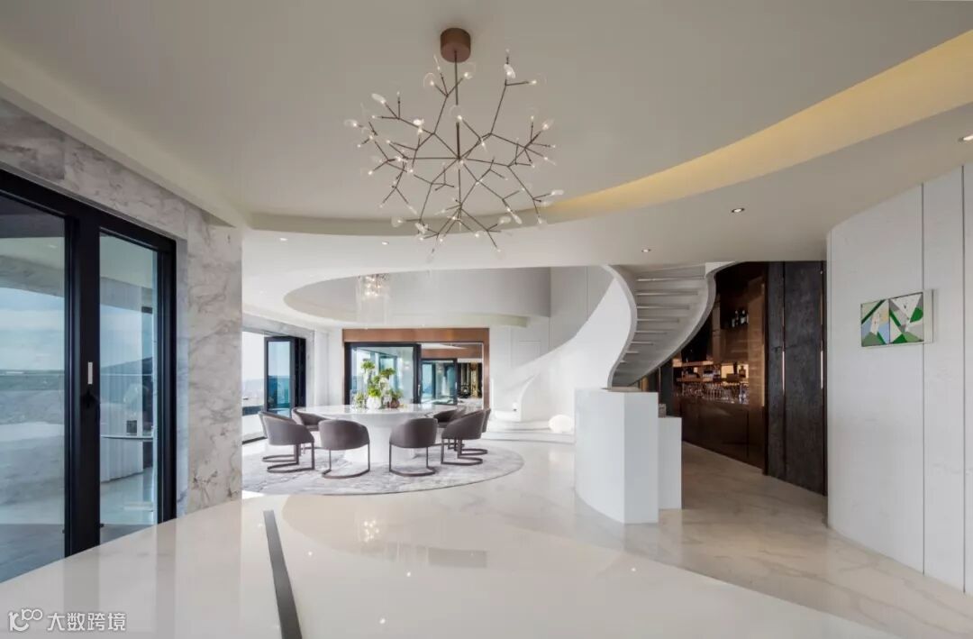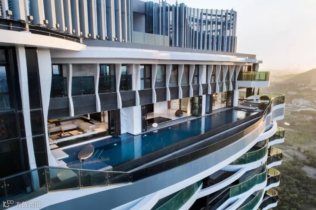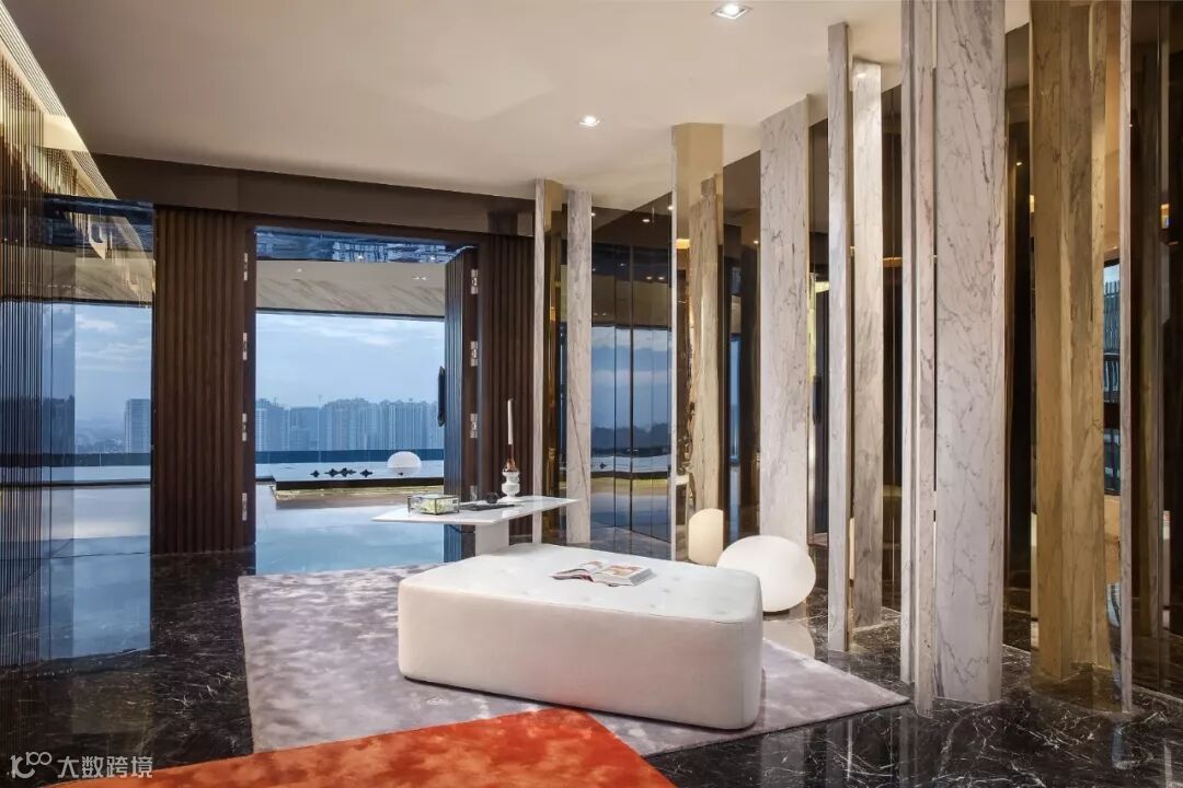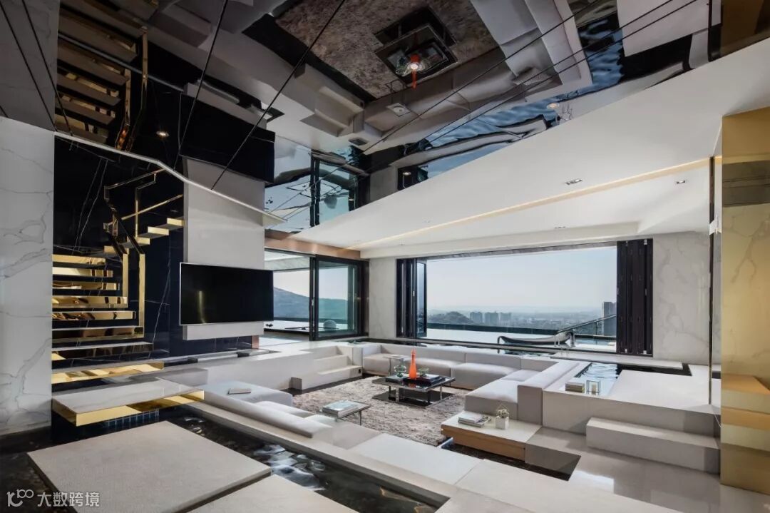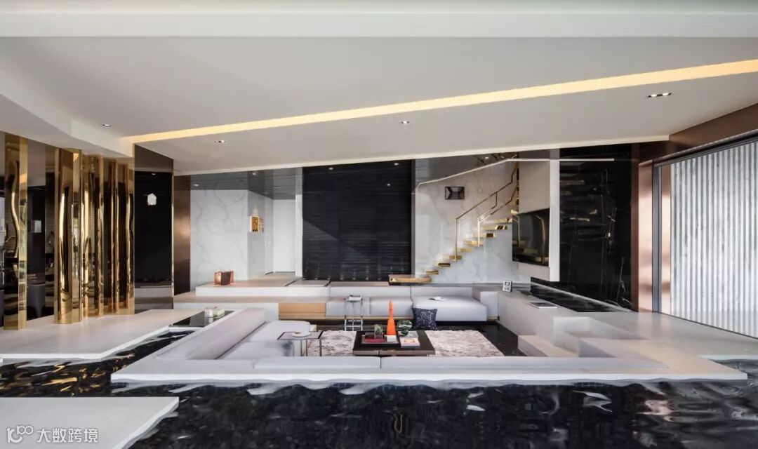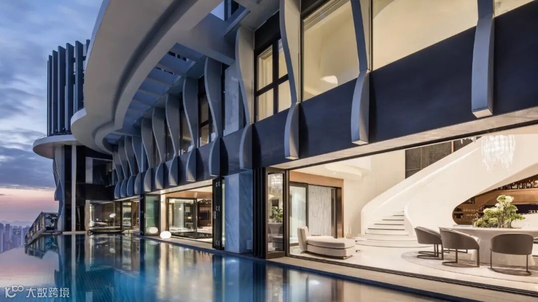 建筑室内外空间的界限在此打破与模煳,塑造无边际泳池和下沉式客厅休息区,延续天际线的线条,让水系光景无限渗透至室内空间。