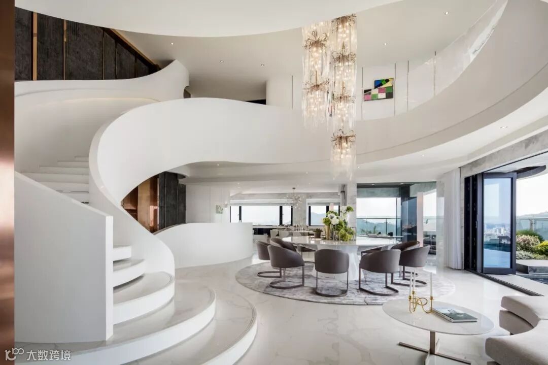 在纯净简白的色彩基调下置入当代低调奢华的傢具陈设,大理石金属等不同材质的通透质感和粗旷肌理,锻造错落有致的视觉层次和品质感。