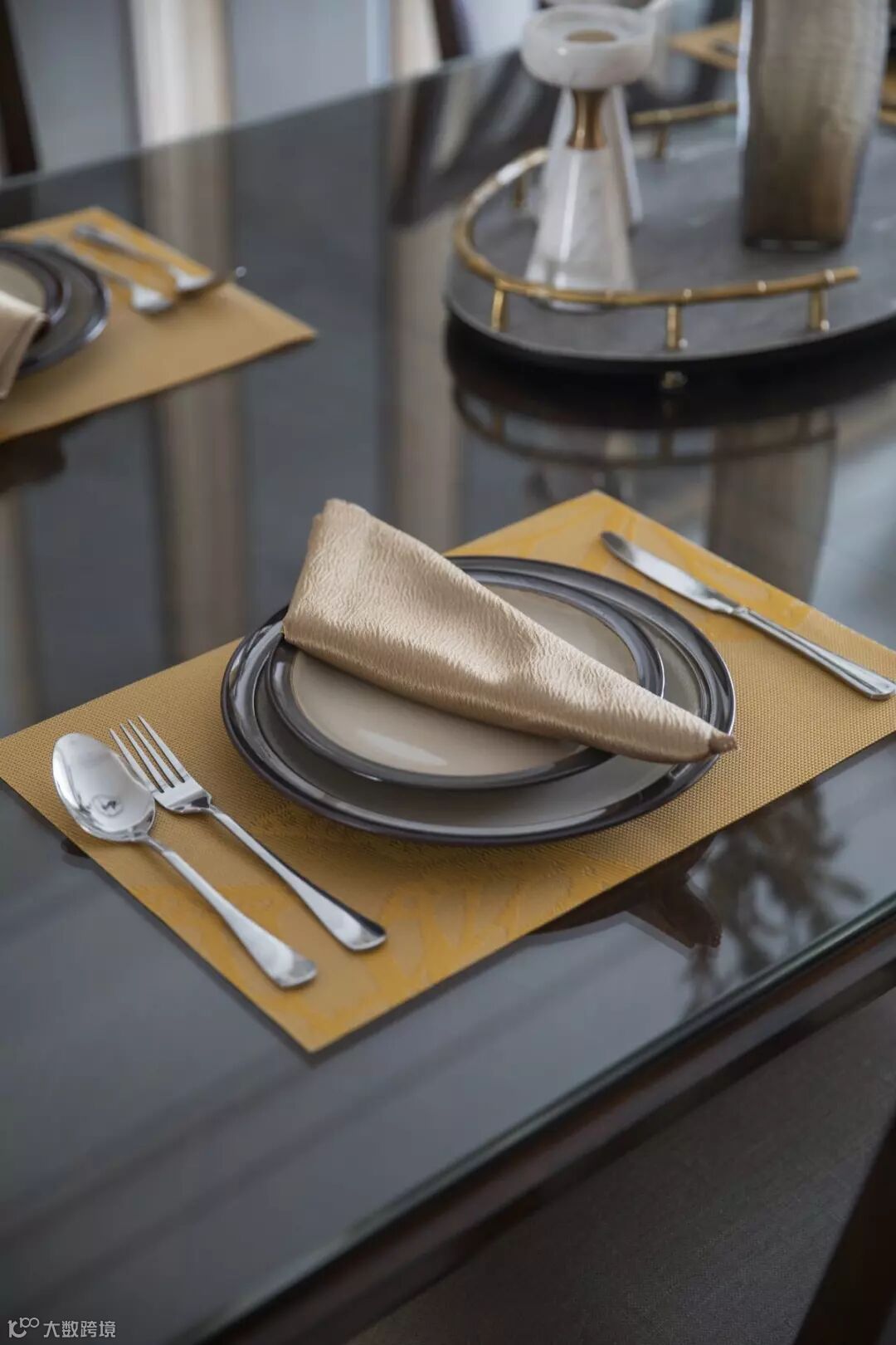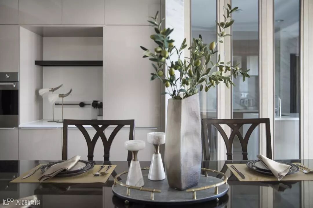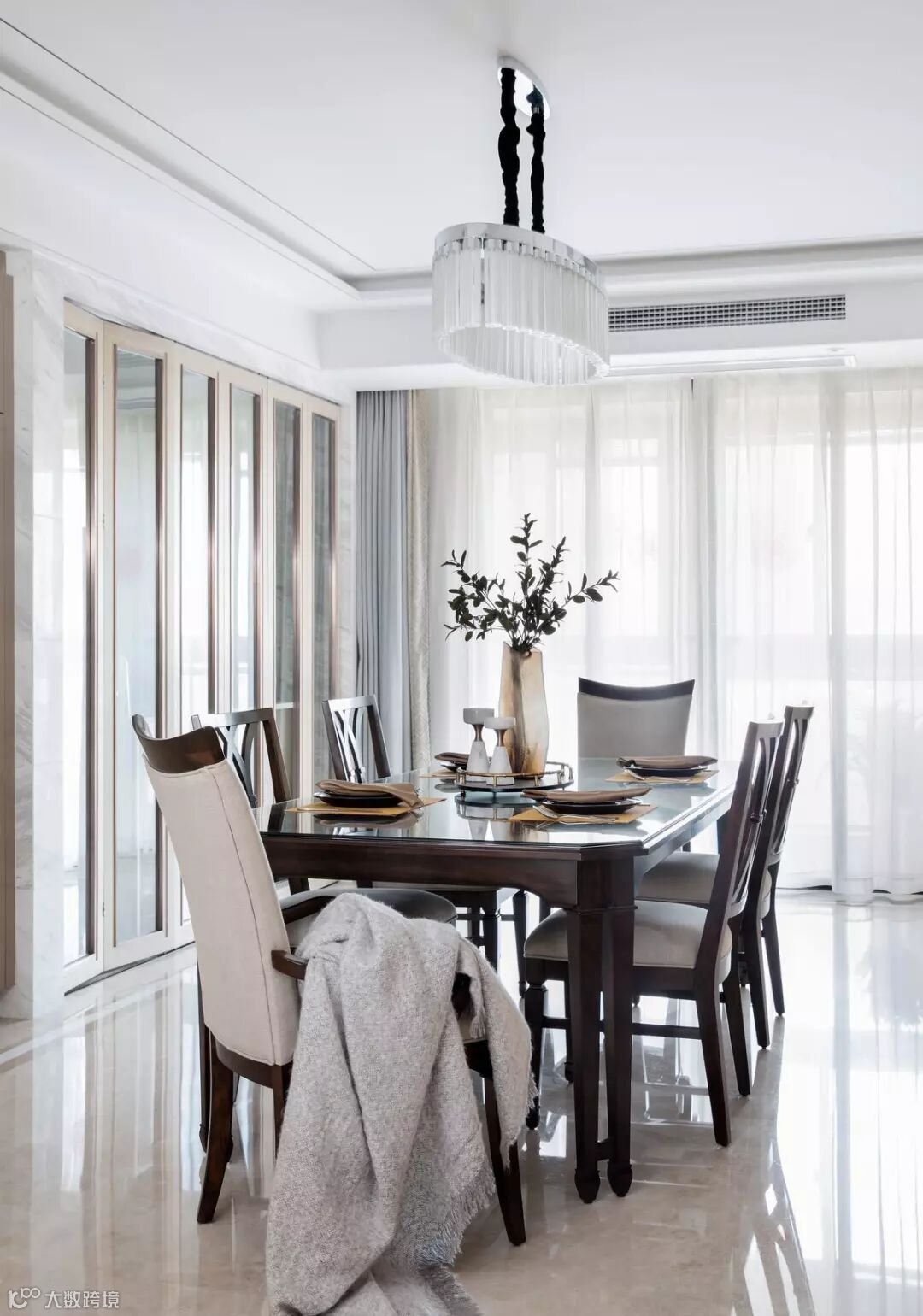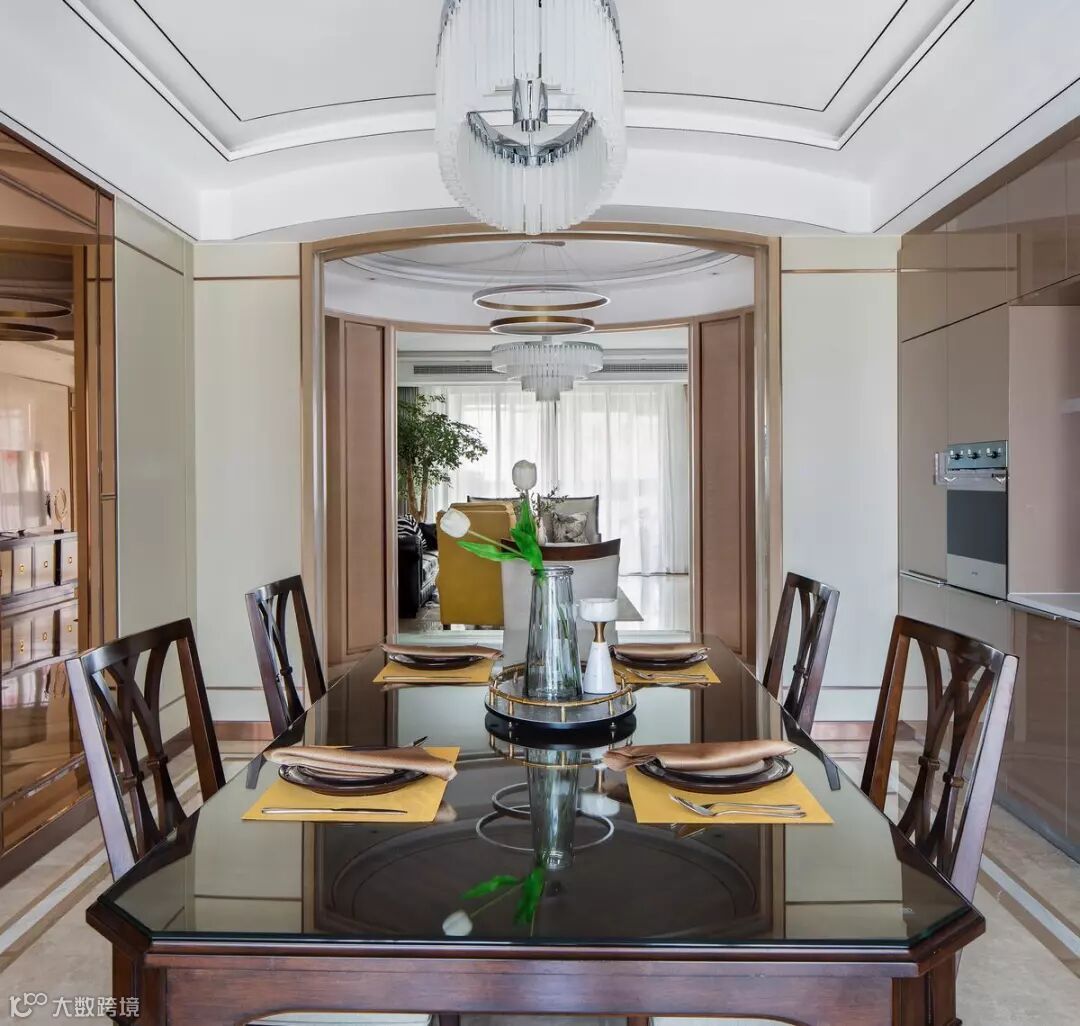 椭圆的吊灯搭配长方的餐桌,将“天圆地方”的东方智慧与西方设计融合,构成了设计与实用统一的现代美式风格。