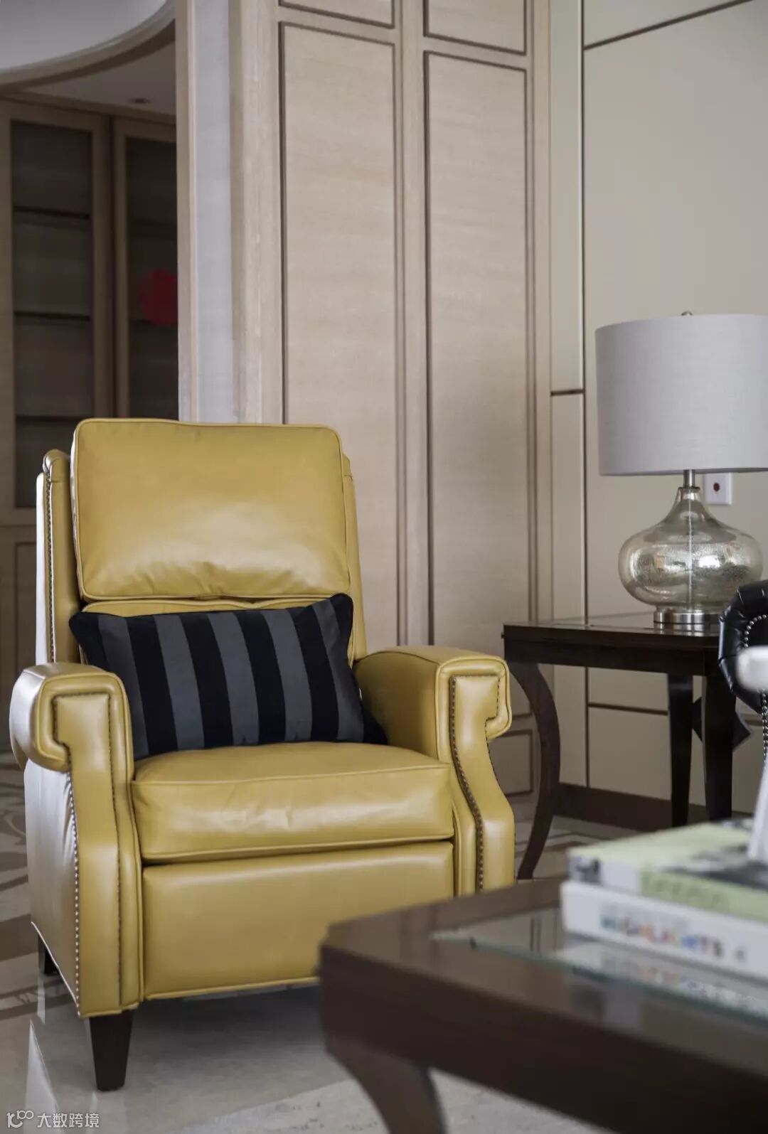 极具设计感的台灯和摆件,以及黄色的单人沙发,突破了黑白灰三色的沉稳,带来浓郁的生活气息,点缀出温馨的居家氛围。