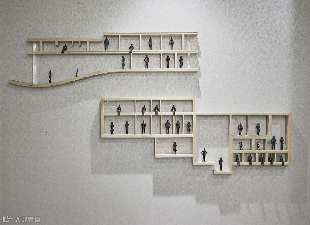 空间置入了建筑剖面的艺术墙饰,拓展了多维度的空间厚度。这不仅仅是艺术挂件,而是一次梦想的升腾。