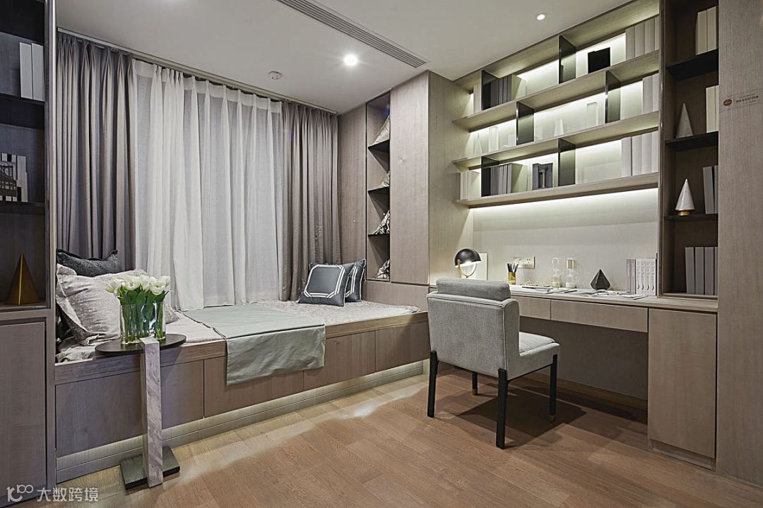 静坐书房一榻,睡着那柔和的光线加之有谐趣的手办,舒适的天鹅绒书椅,饰品有着建筑师情节的专注感也有着对生活细节的注重,光线的晕染,营造出了深浅不一的精致光影。