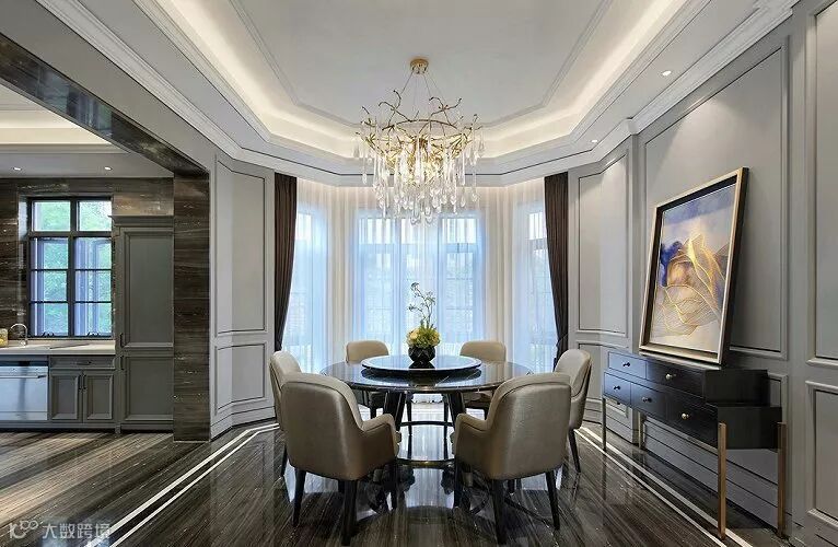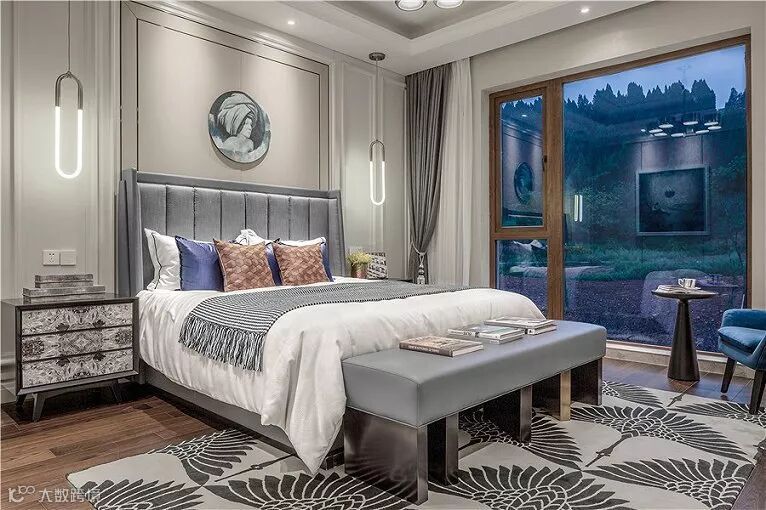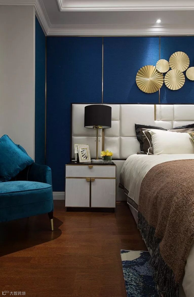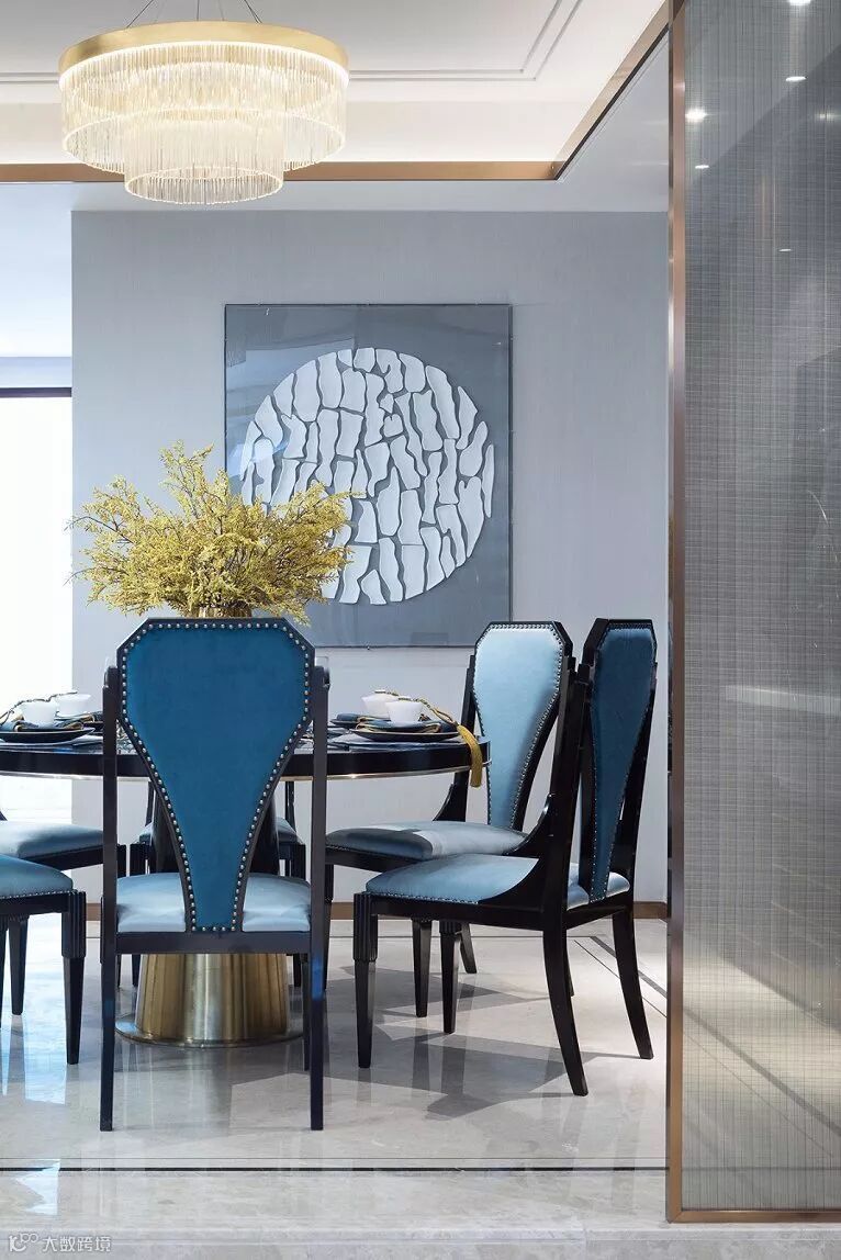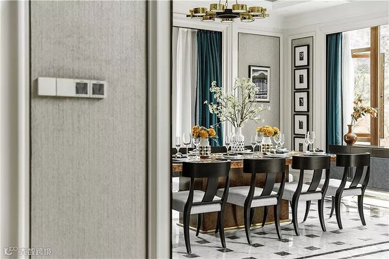 在简约的空间里,设计师通过材质、色彩的运用和软装的搭配将轻奢的美式风情打造得淋漓尽致。