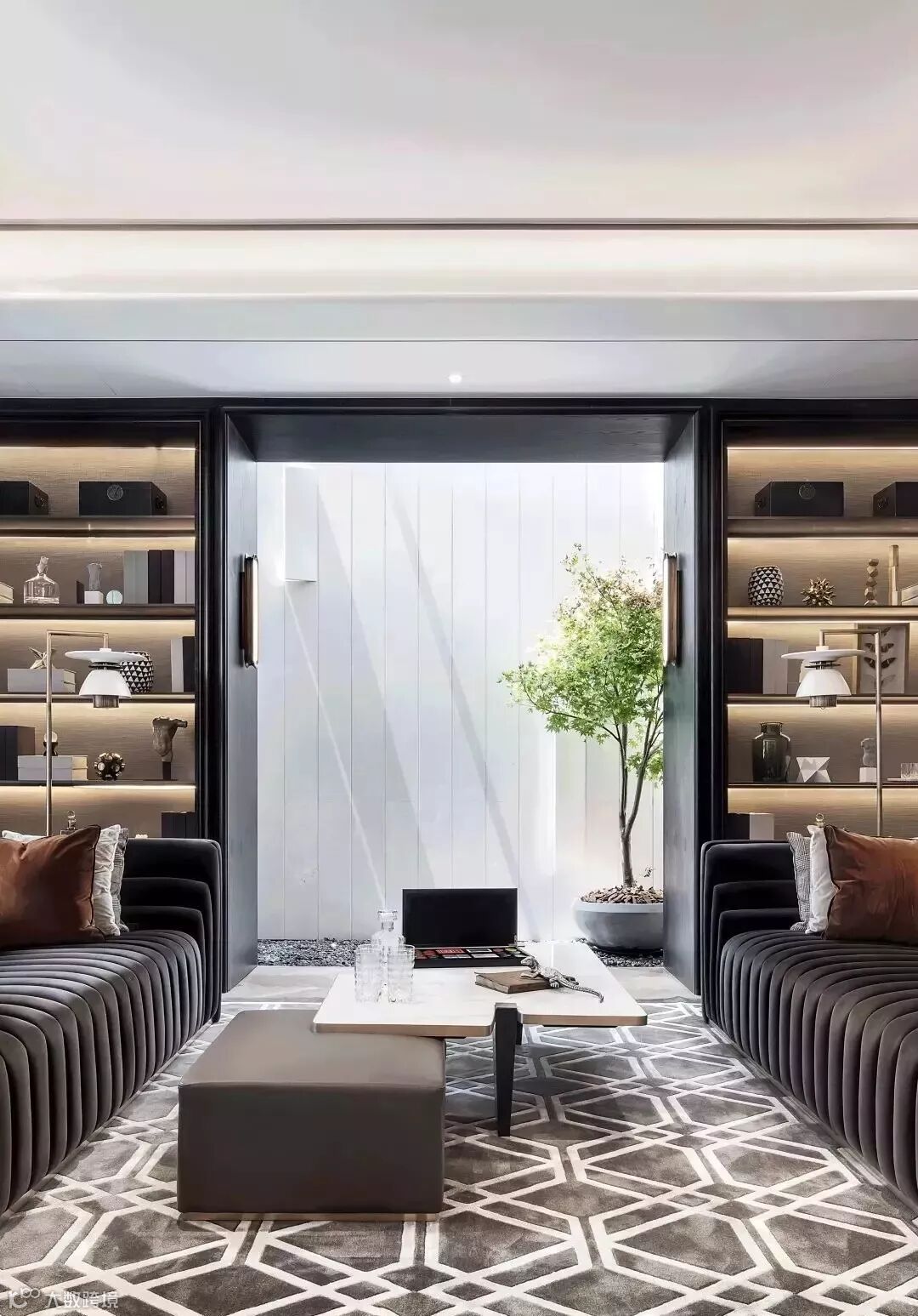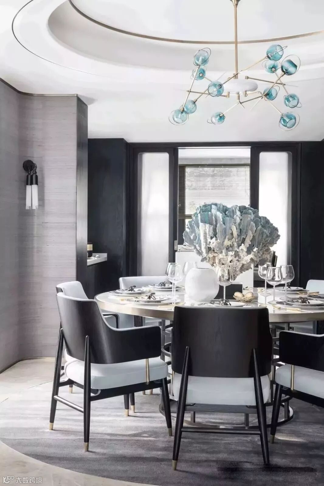 从地毯的扇形拼接、线型吊灯的错落秩序,到座椅的优雅姿态,将当代东方女性的韵味淋漓展现。