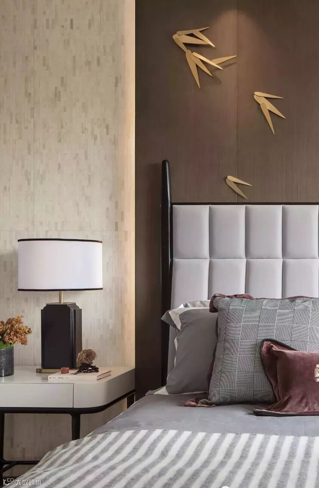 亚麻饰面与木饰框体糅合,将墙面幻化成画框,而那金属线条、悬浮地面,则更像是让东方气韵在现代手法下开花,用平衡去赋予空间想象。