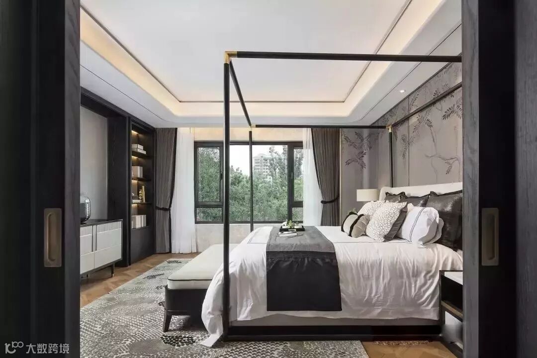 在老人房的处理上,设计师将“远望山水,近观花叶”的悠然意境融入。
