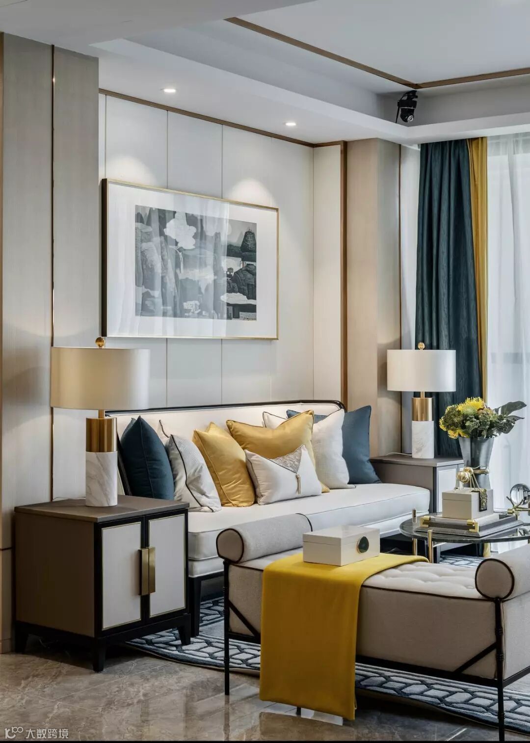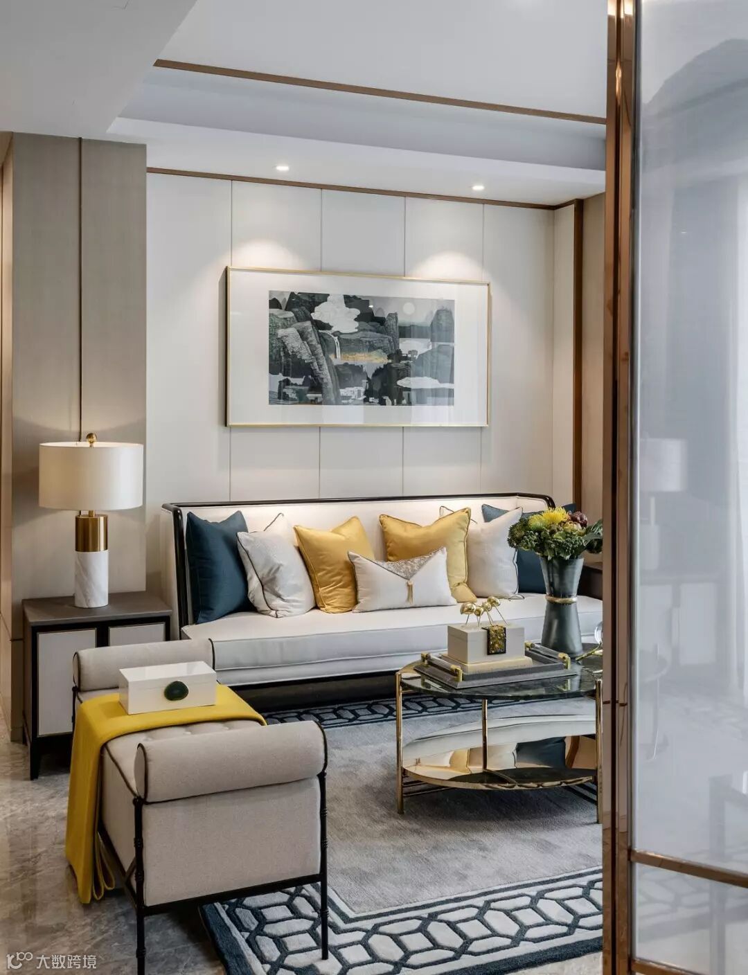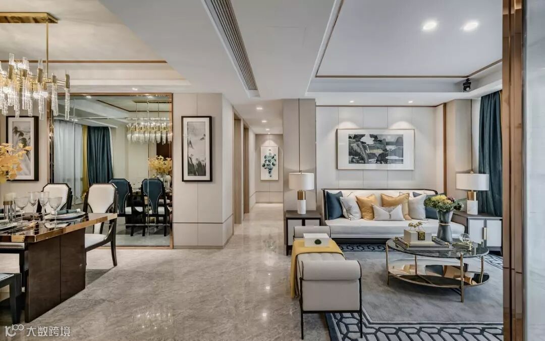 板房空间承袭售楼中心的奢雅范,但蓝与黄的色彩组合在现代中式的空间里变得更为内敛,也生发出了特有的韵味。