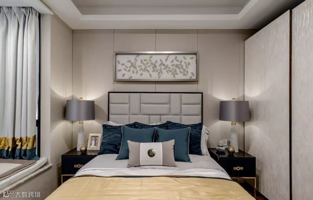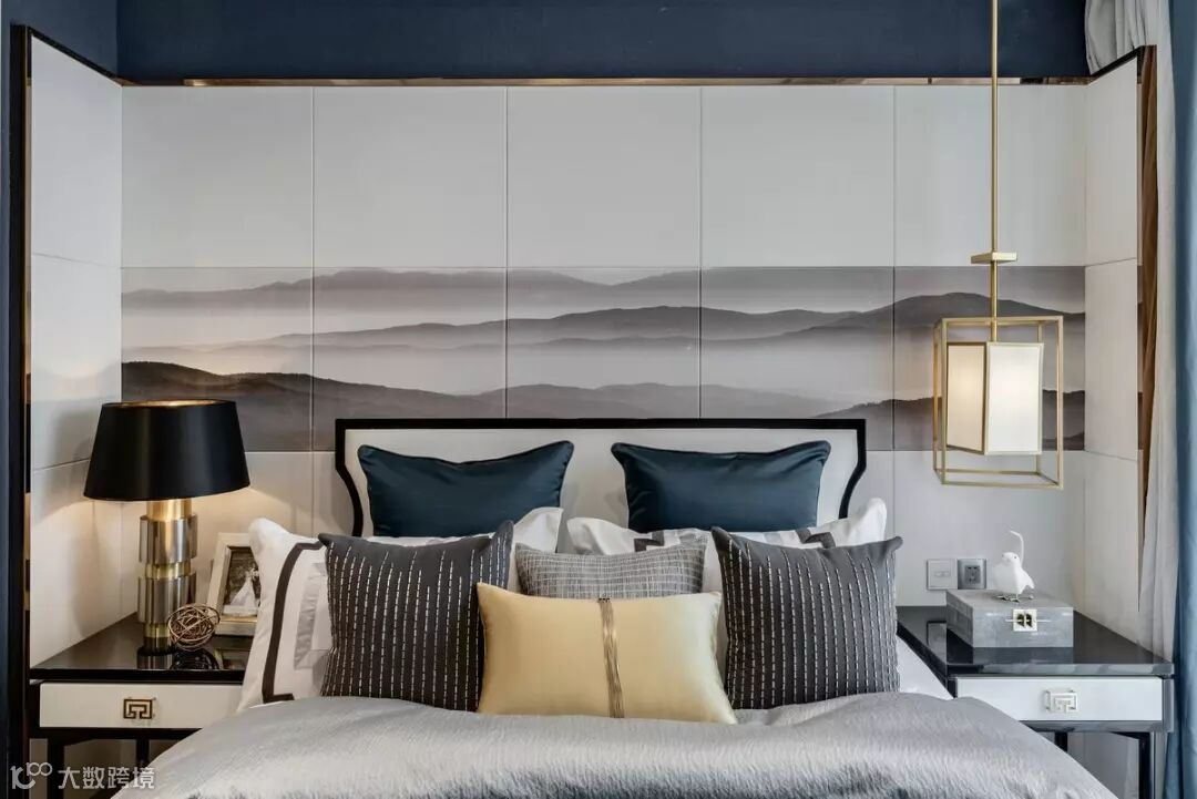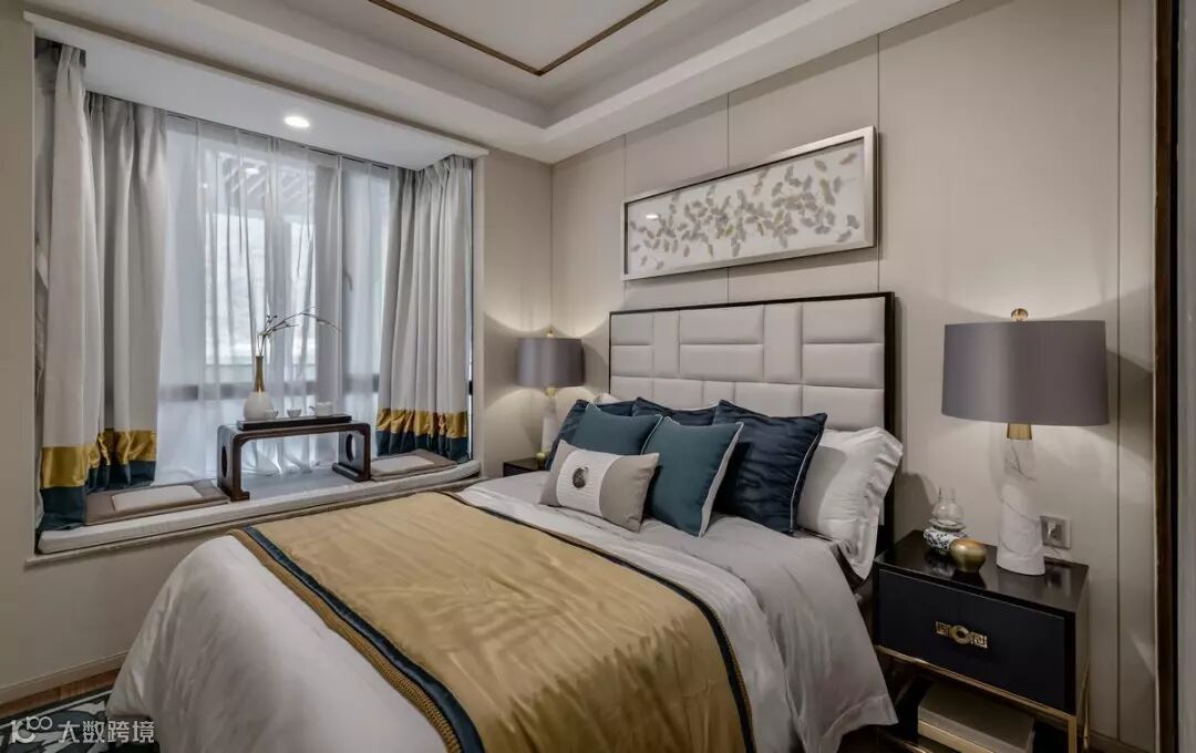 在卧室,中式的大气内敛更为突出,黄与蓝的搭配出奇的平和,安静却极富感染力。