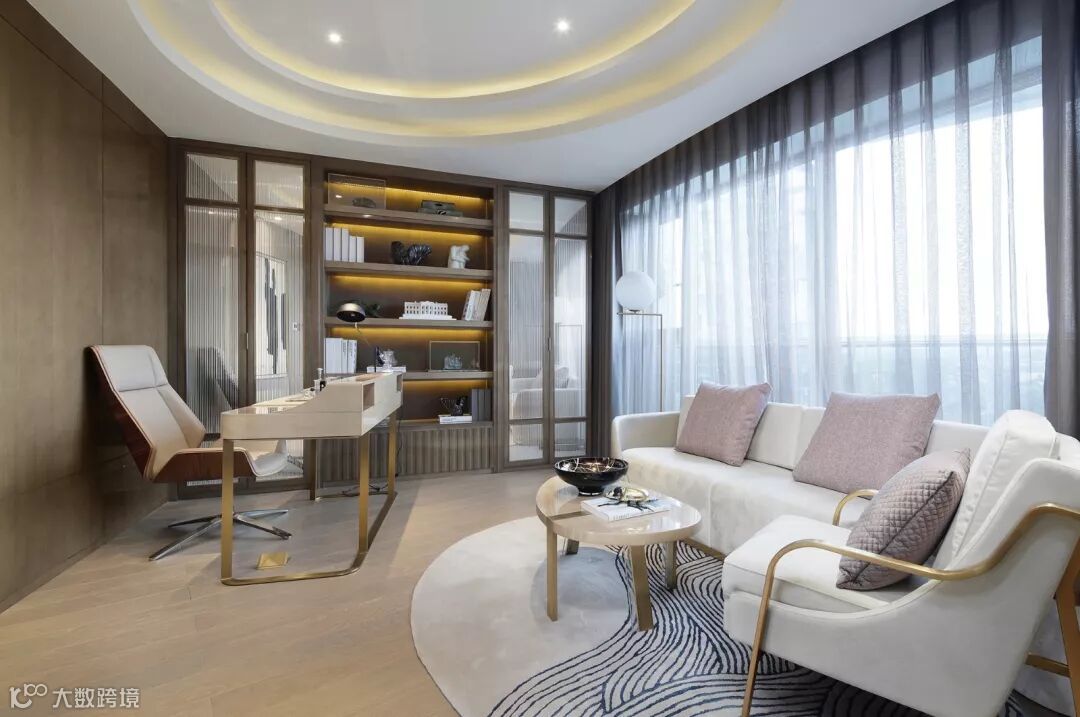 宽大的落地窗尽可能地对空间进行取关,让书房更加明亮,办公阅读环境也变得更加安静。