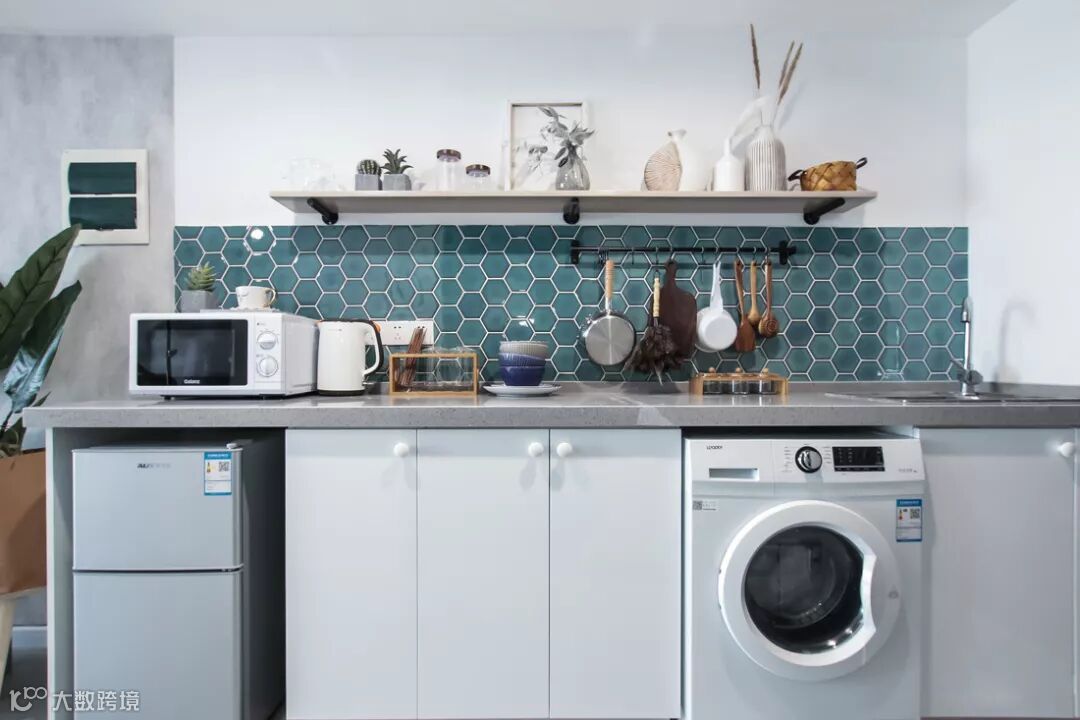墨绿色六角棱形砖并没有满铺墙面让人没有很满的感觉,让空间留白,创造一切可能性。