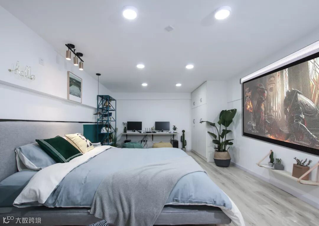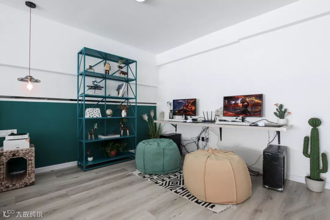 两台立式电脑让业主在娱乐和工作中寻找平衡。
