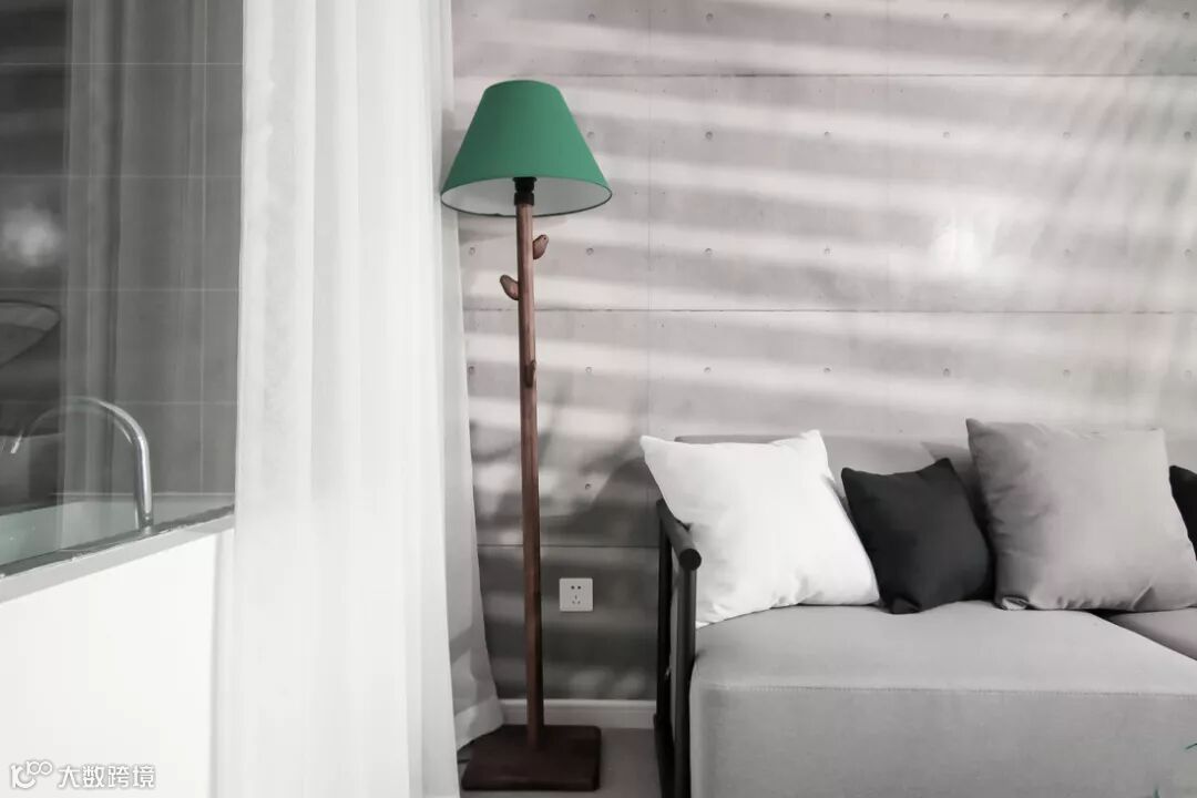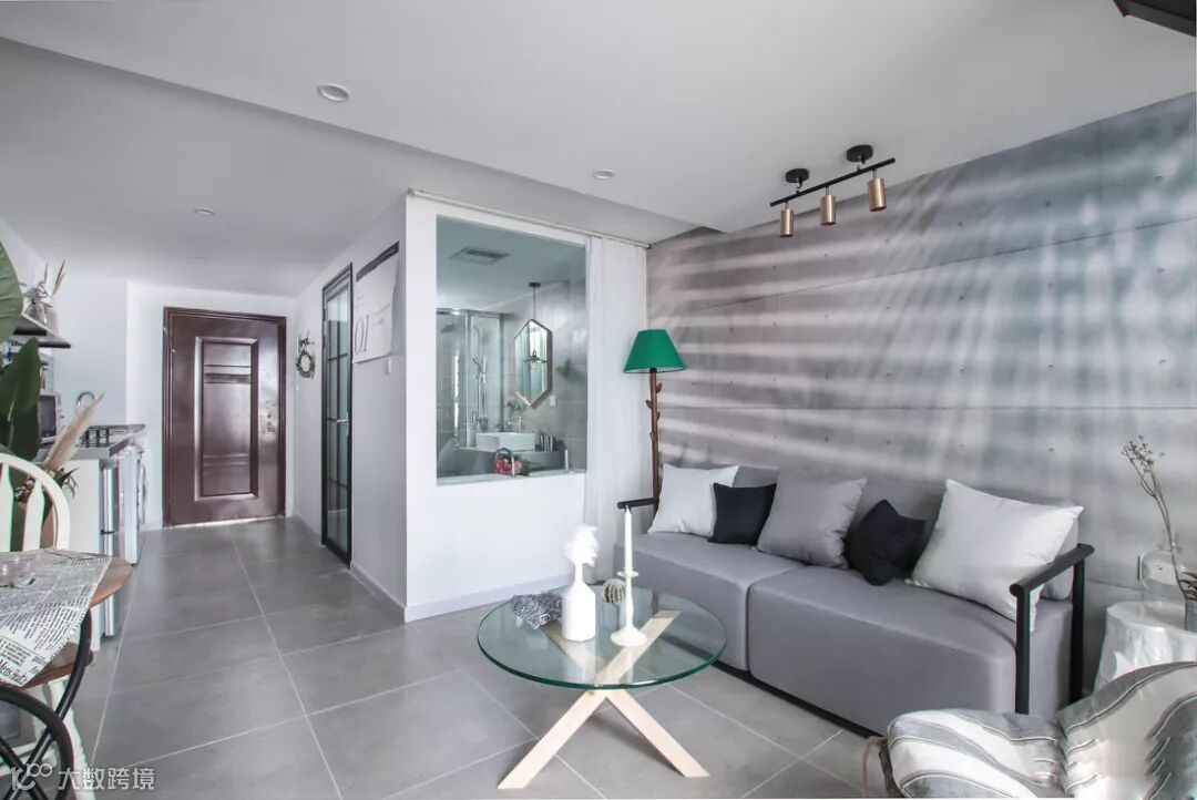 茶几选用了透明简易款,地面水磨石的地砖混搭出一丝复古气息。