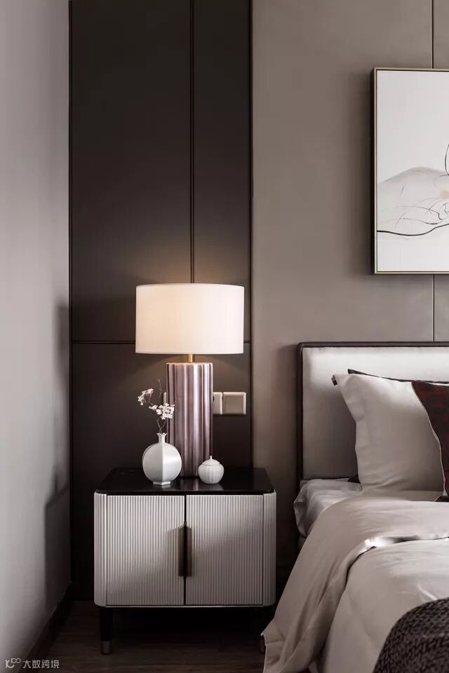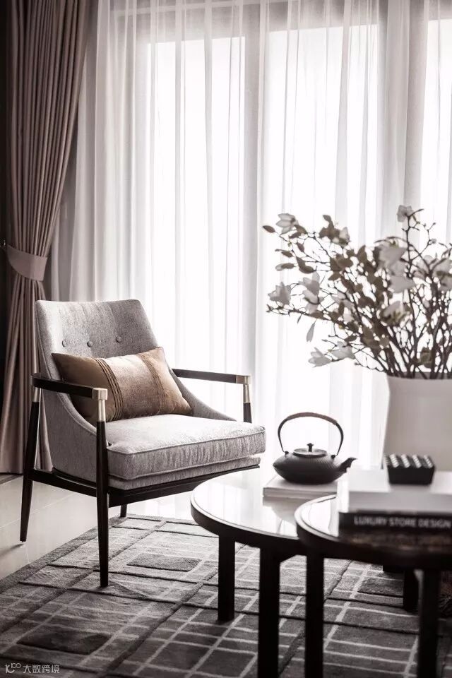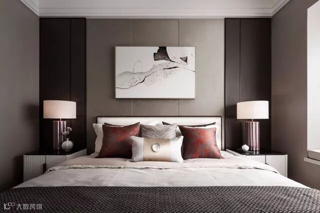 以沉静稳重的灰褐色色调与新中式元素相融合,体现出整个空间中流露几分温婉秀雅的东方情怀。