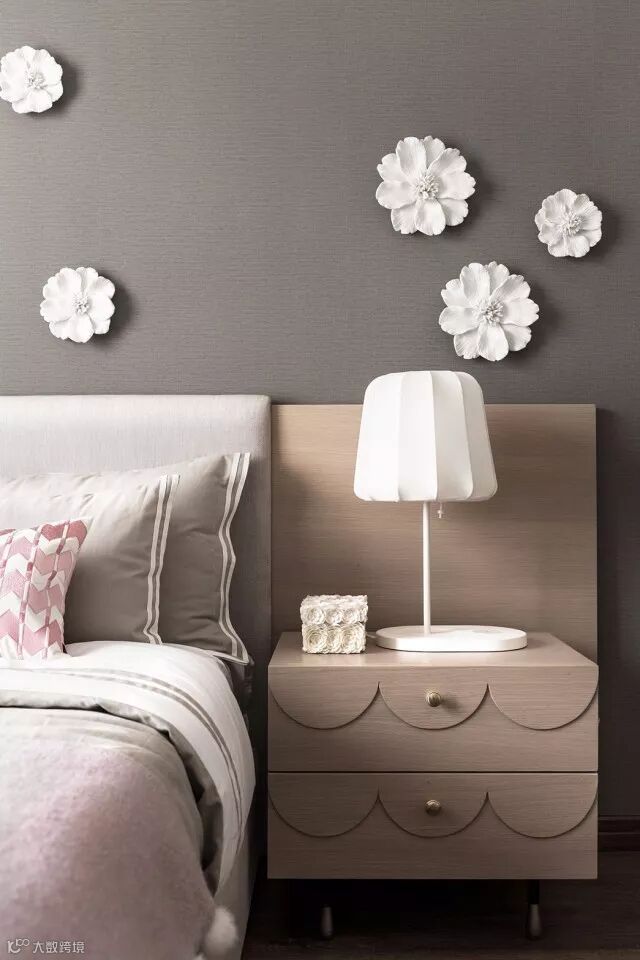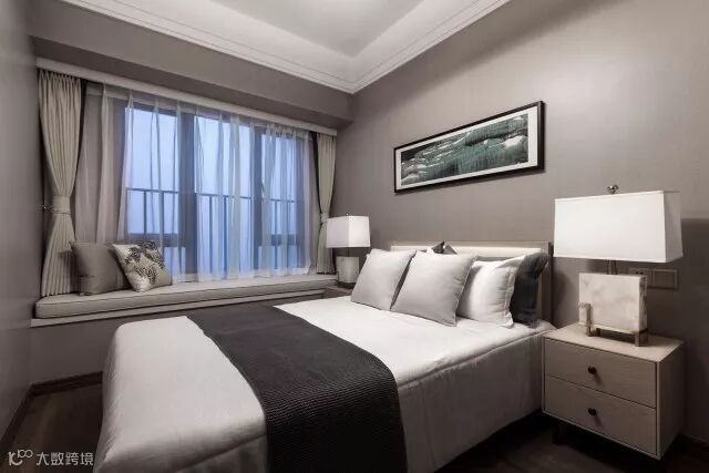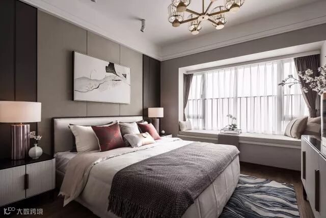 在卧室的设计上,运用简洁明快的设计风格。床品则选择浅色调,增加层次感,优雅而时尚,可以令视线进退得宜,打造舒适观感,演绎出典雅和华贵气息。