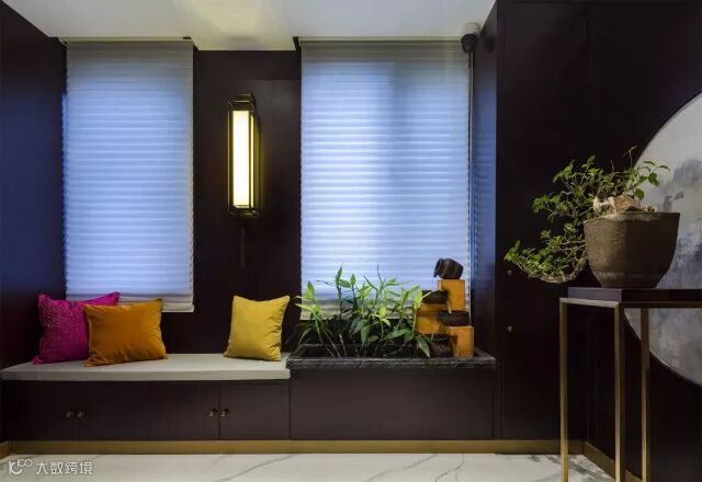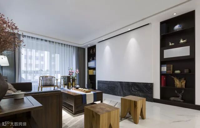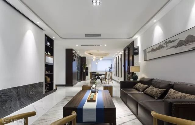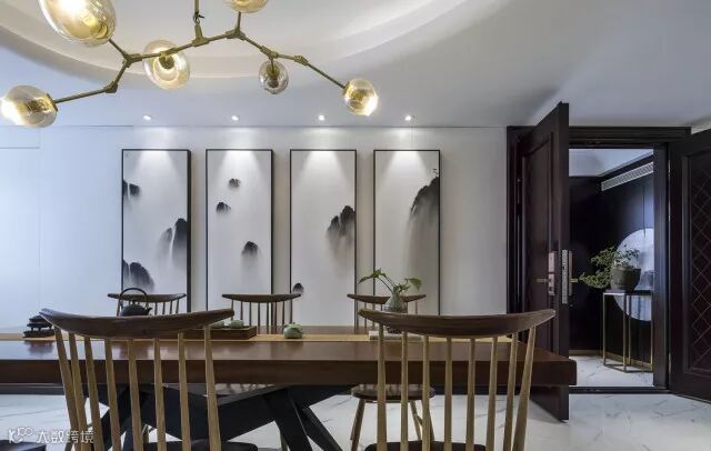客厅的长卷山水图,美轮美奂给予你无限的遐想,这就是工笔画的魅力与巧妙精细之处。看似简净的设计,在含蓄中体现着对中式美学的独到理解与思考。