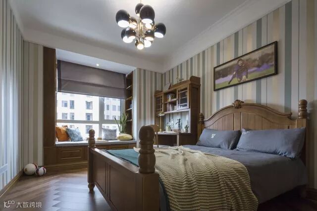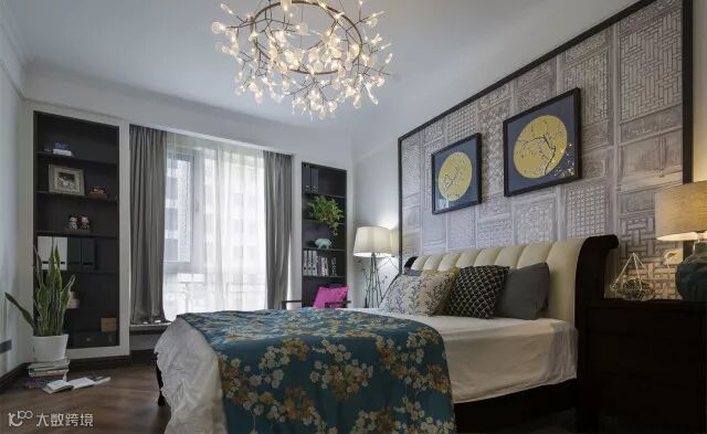 主卧打造宁静、悠闲之感。床铺简洁大方,设计师充分将当代文化与传统审美相结合,提炼中式元素并加以简化,让家具变得更为简洁秀丽。