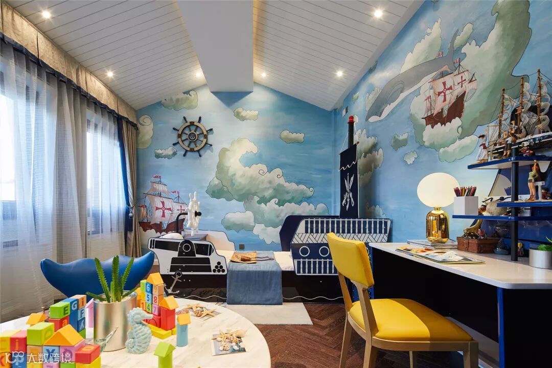 女孩房以蝴蝶纷飞为主题,营造童真自由,阳光灵动的空间风格,奠定了整个空间的基调与属性。同时以花朵作为主题,通过相同元素的延伸,增强了空间的连贯性。