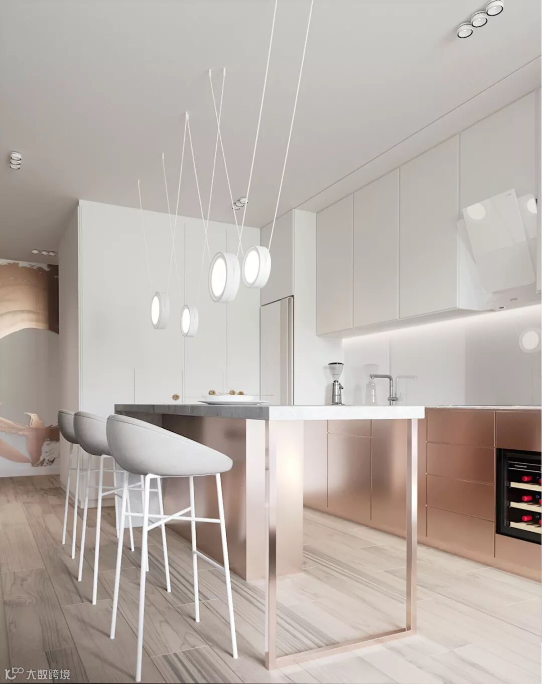 将现代社会的产物以装饰品的形式表现,空间的分配恰到好处,区域变化的分隔符点点渗入到空间的各个角落,线条、墙面与色彩的交织,成就经典之作。