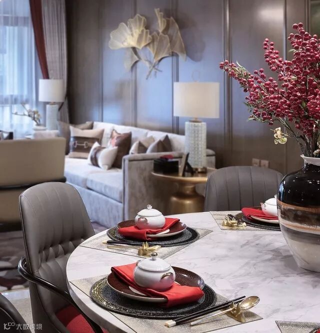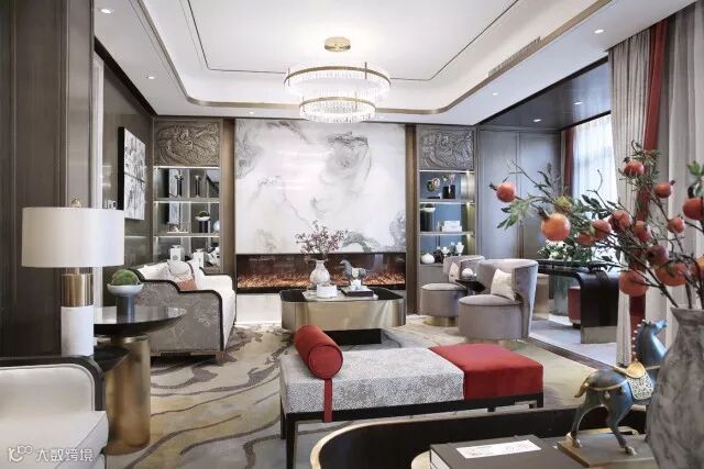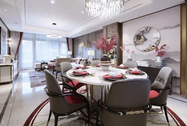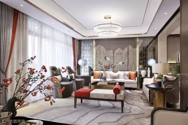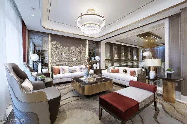 云想衣裳花想容,春风拂槛露华浓。用瑰丽的色彩渲染出家庭厅的华贵感。