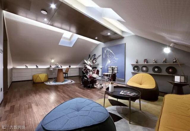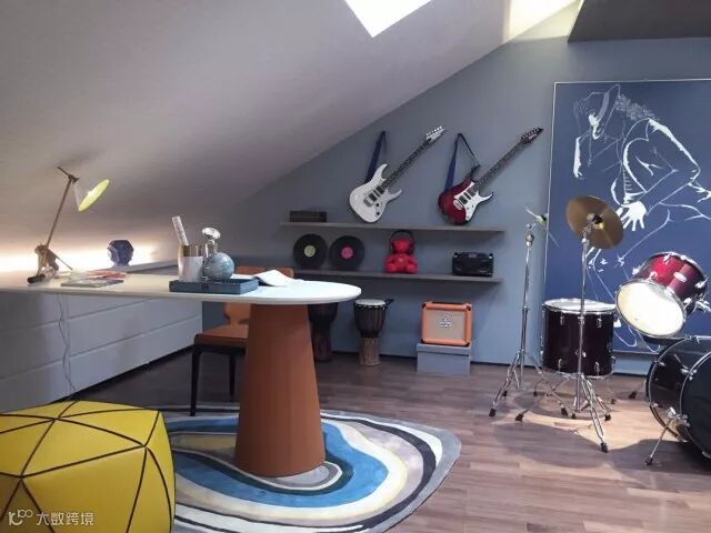 男孩房以“乐”为主题,一个小小的阁楼,开辟出一个男孩对音乐梦想的天地。