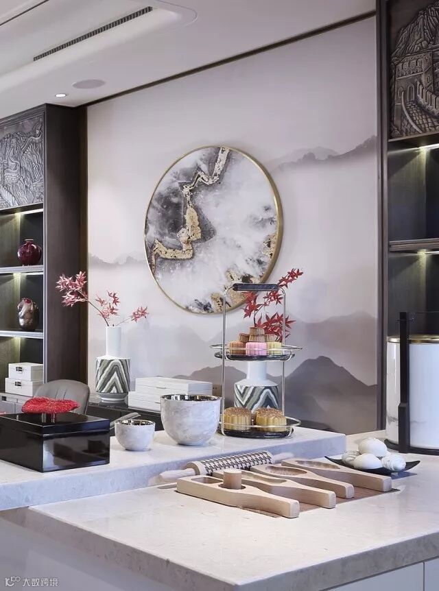 背景之苍山明月与吧台上手工制作的月饼,恰如其氛地突显了传统佳节的仪式感。