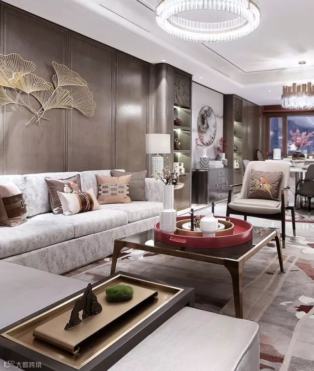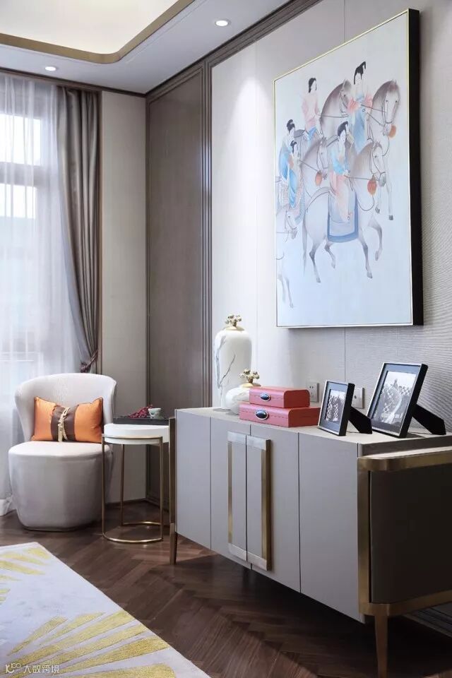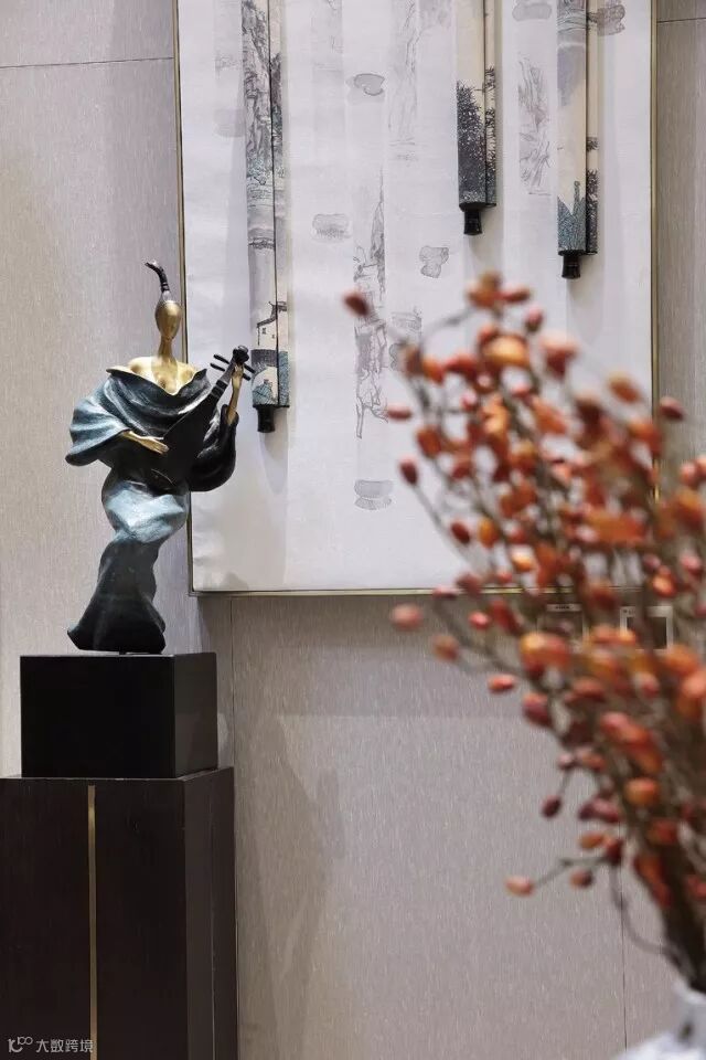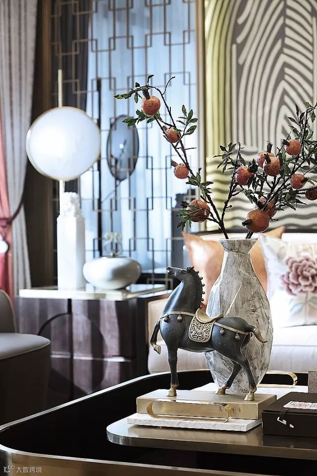 客厅中正、大气、开敞,家具在空间中的放置分合有致,案几有序、器物风雅。