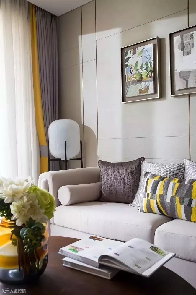 客厅部采用了米黄色作为主要基调辅以银杏黄穿插其中使得整个空间色彩更加丰富,温馨且舒适,每天伴随着柔和的阳光注入进来,饱满而又富有生命力。