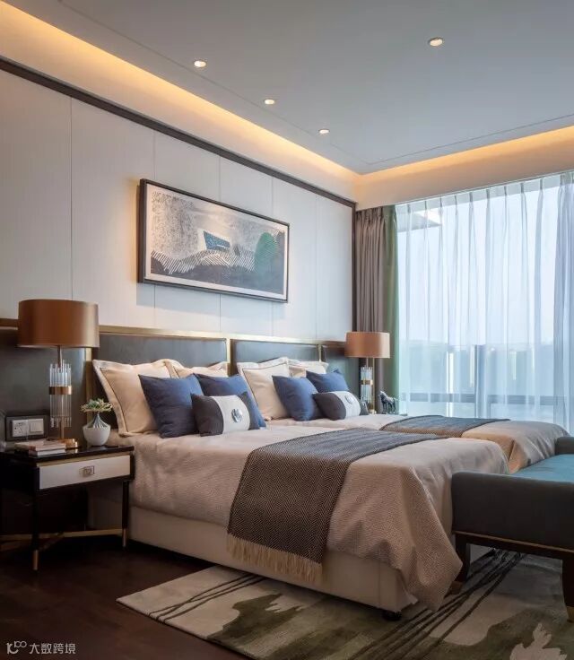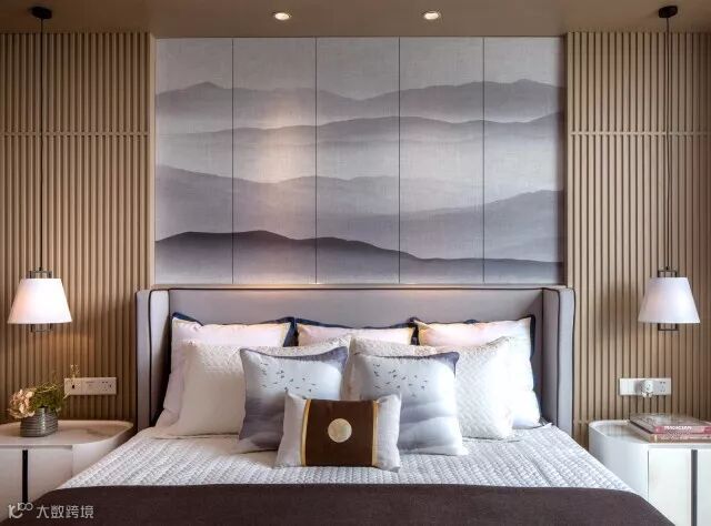 运用自然的米灰色棉麻布料,有质感的布料肌理配合温润的木,带来温暖、禅意的东方味道。