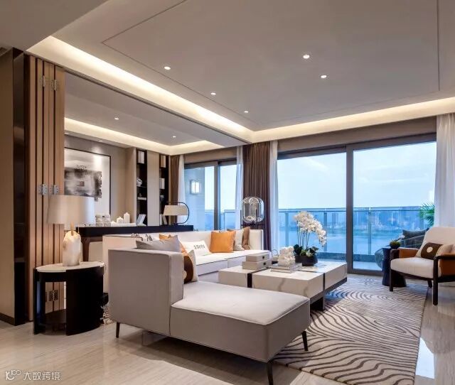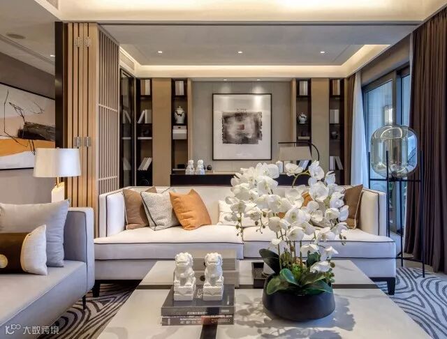 一个房间书房或者一个茶室跟这个客厅连在一起形成一个特别大的宽厅,形成豪宅的气度。