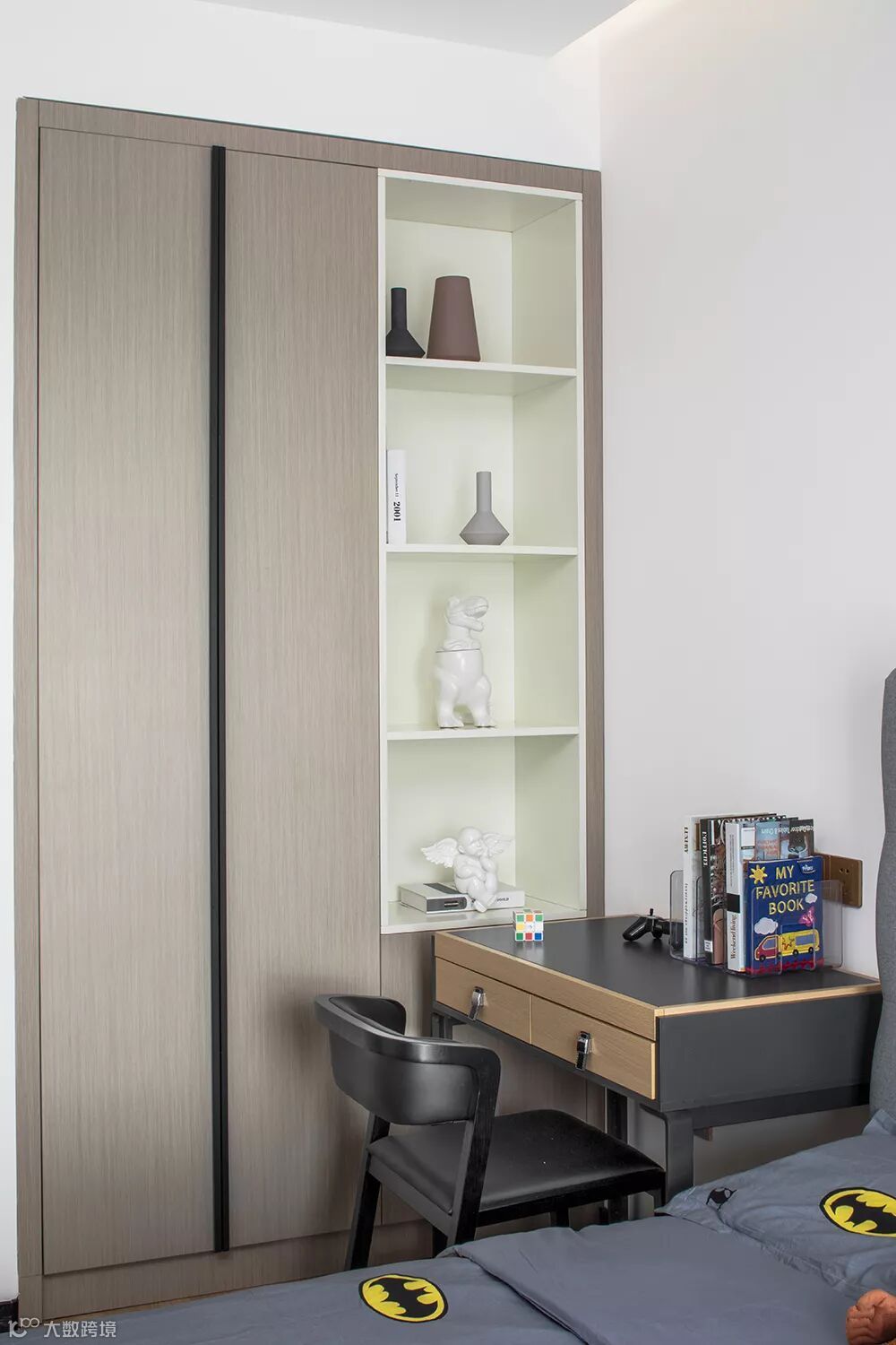 小孩房采用无主灯设计,希望通过T5灯管照明,这样一来可以避免光源直接刺眼,二来小孩本来处于长身体阶段,希望可以随着时间的推移只需要改变很少一部分软装就可以满足他对于色彩审美的改变。