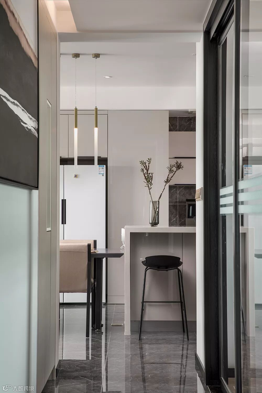 吧台与餐桌相连,吧台侧面考虑了电源,吧台上考虑嵌入式电磁炉,作为重庆人,可供业主与家人在餐桌上吃火锅或者在吧台上煲汤都是不错的选择。