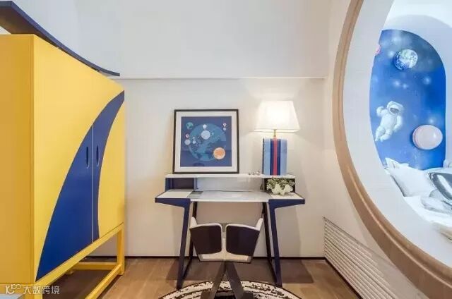 儿童房采用鲜艳的配色,去勾画出梦的斑斓。富有童趣的摆件与壁画,则让小主人更加入戏。太空舱般的儿童床下,还巧妙设计了收纳柜,将空间利用最大化。