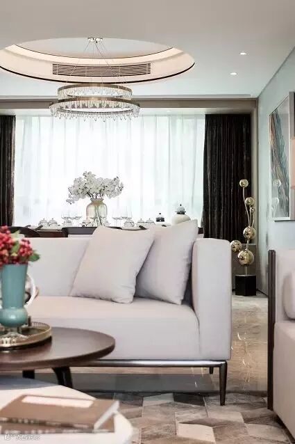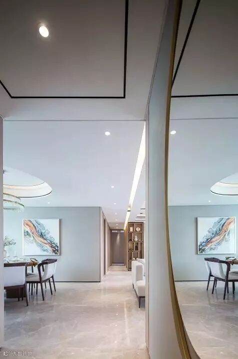 公共空间,选用清透素雅的米白色、淡灰色作为主色调。局部的跳色,像生活里的小确幸,给人惊喜。