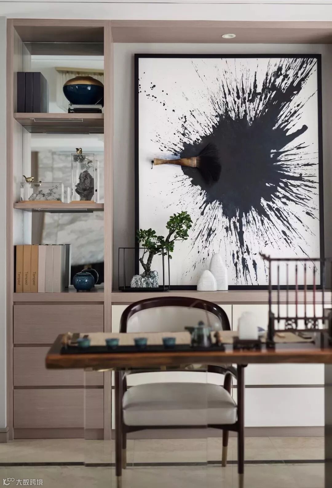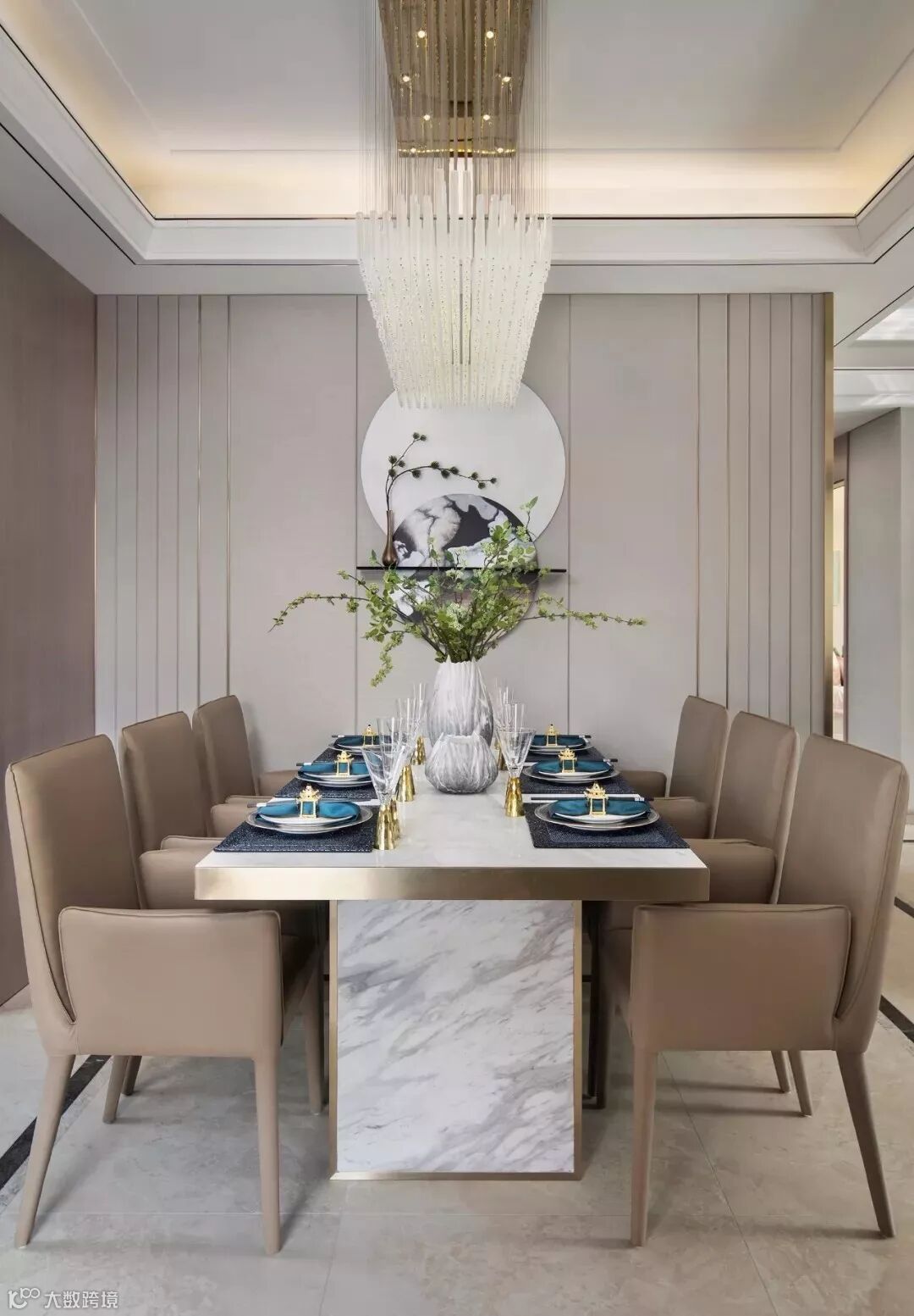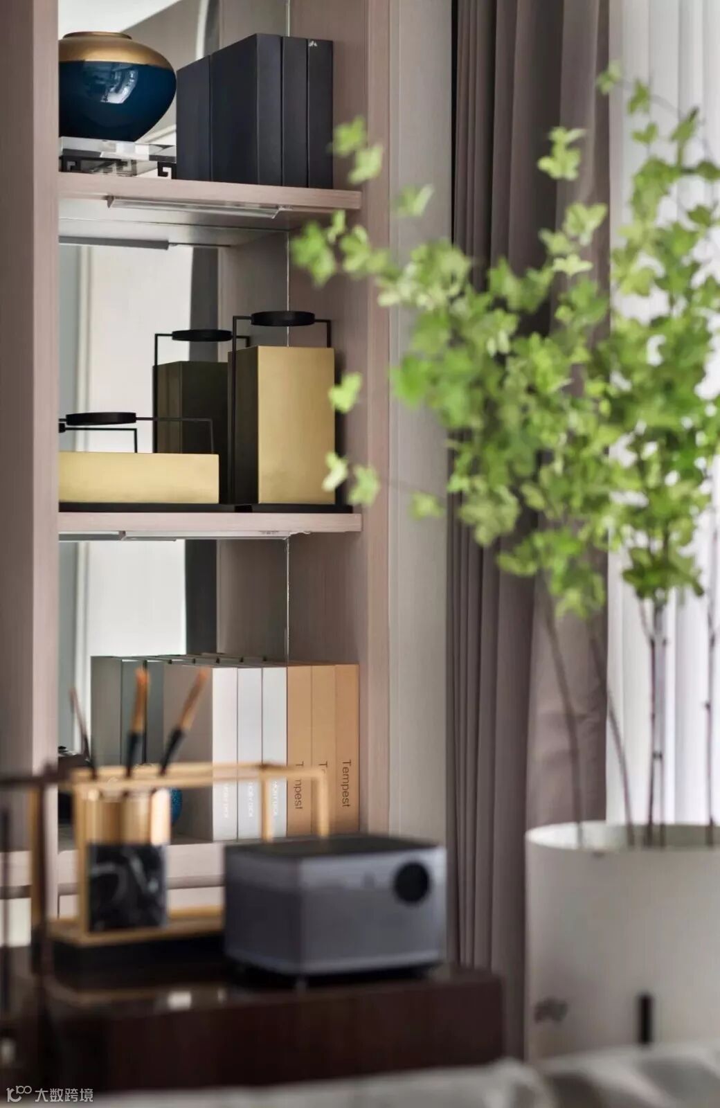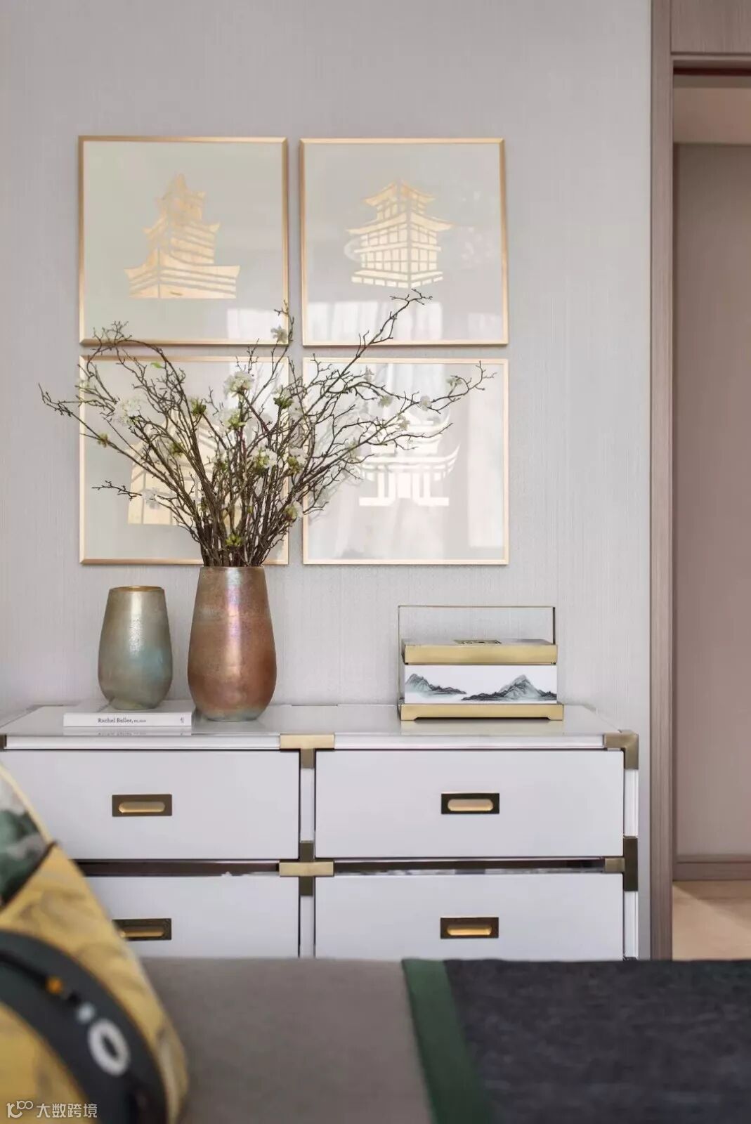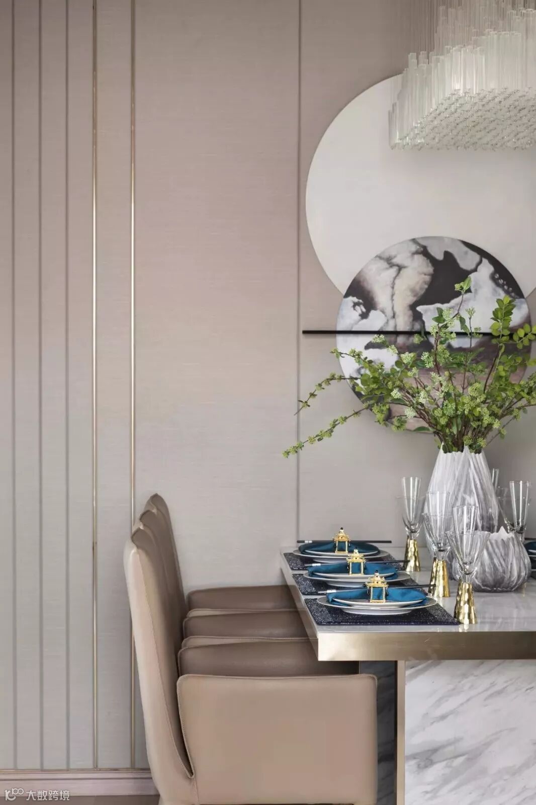 本案设计师以纯白的瓷瓶安插最轻盈清鲜的绿枝,留住春的气息与黎明的莹洁。