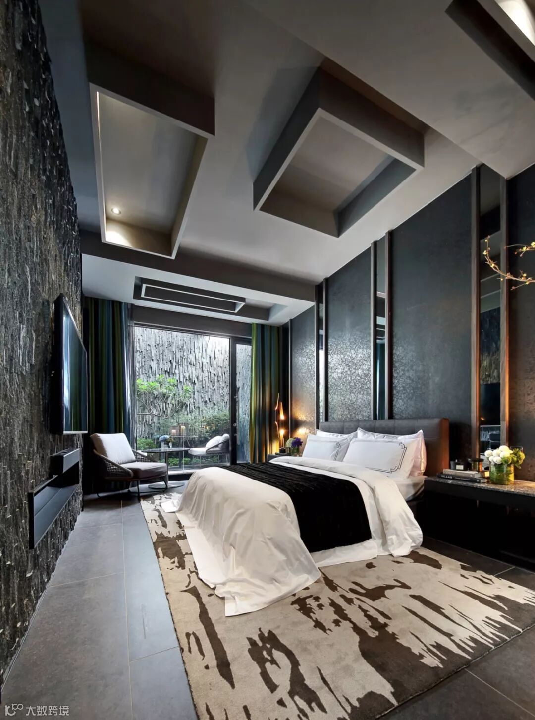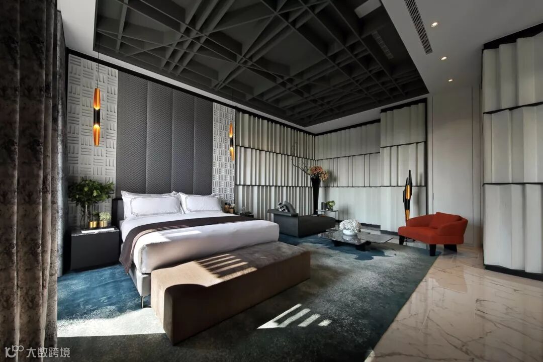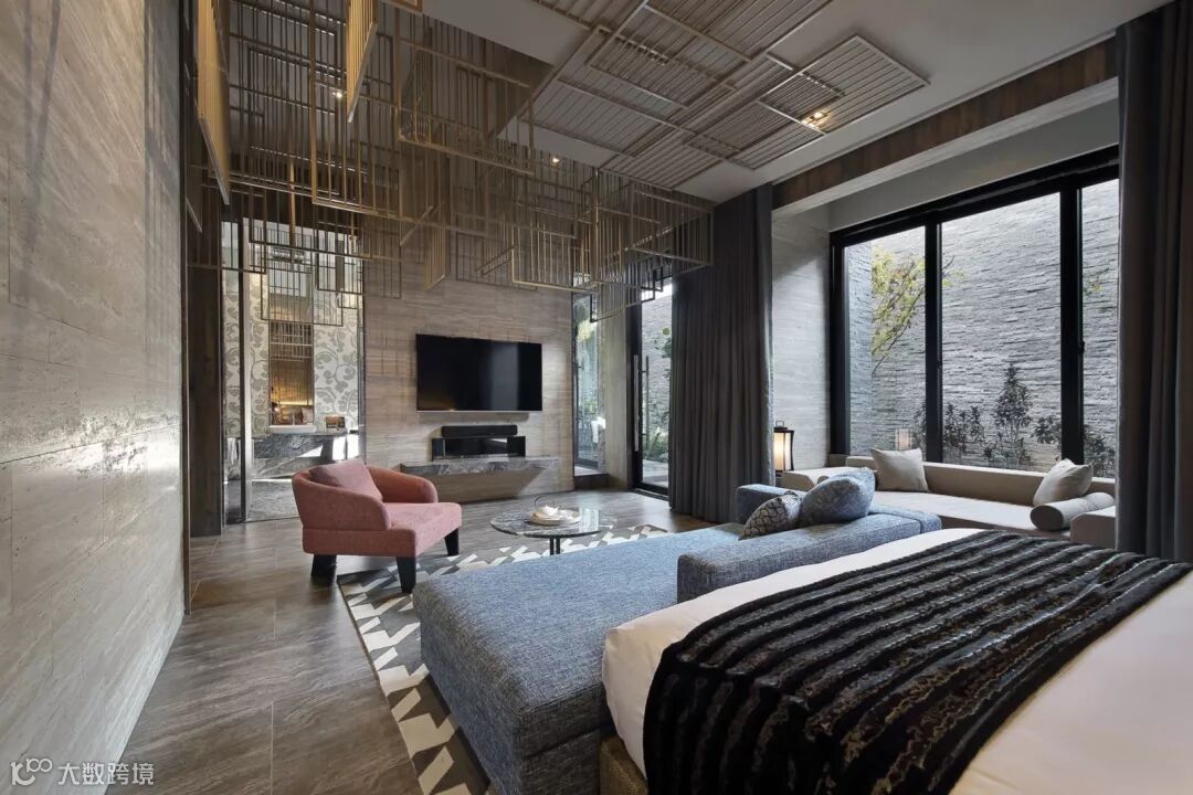 这顶层旅馆关注空间机能与型式,积极创造空间水平轴线的延续来衔接窗边天地大景,借此深化视野旷邈,室内更广泛采用空间借景延续手法,将室内外空间合而为一,融为自然与生活日常感。从而勾勒出旅行惬意。