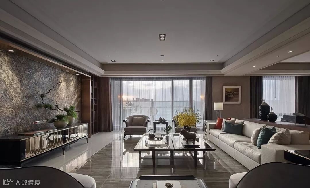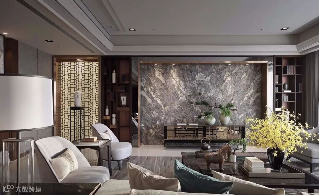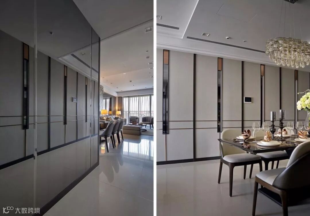 西方的新古典常见线板堆叠、层次对称,偏向柔美、和谐与温馨;中轴线理性对称、层次进落,营造空灵意境的东方新古典就更为适合。